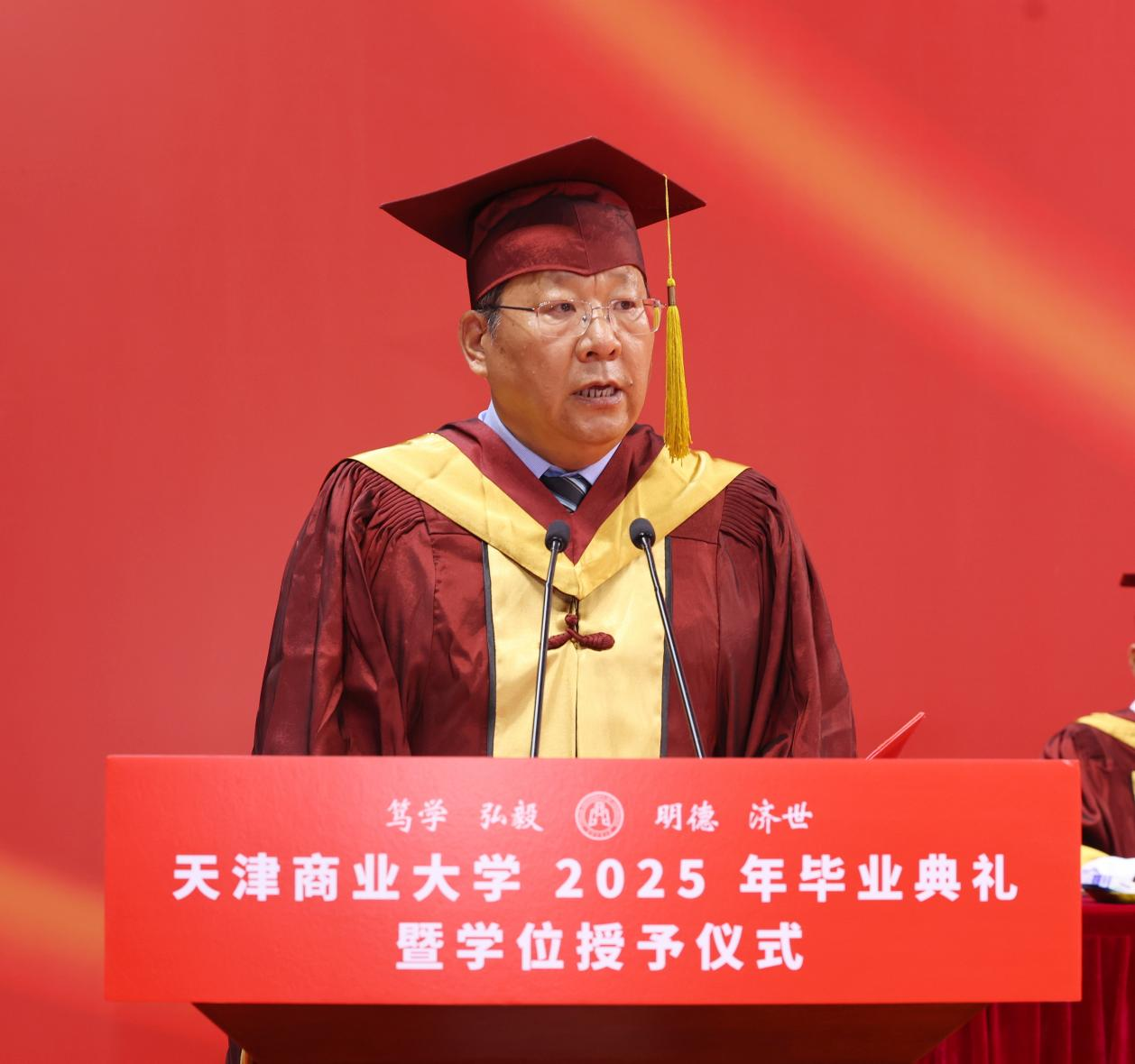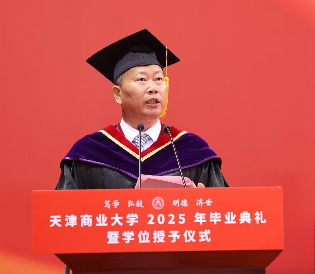 陈冠益对全体毕业生提出三点期许:一是明确人生目标,勇于奉献担当。要将爱国情、强国志、报国行自觉融入新时代的奋斗之中,将个人成长的“小我”融入国家发展战略的“大我”之中,勇担时代使命,在城市、在乡村、在基层、在每一个可以创造价值的地方,毫无保留地奉献青春与才干,在平凡的岗位上不断发光发热。二是练就过硬本领,持续增长才干。要敢于在艰苦环境中摸爬滚打,勇于在急难险重任务中接受考验,在经风雨、见世面中壮筋骨、长才干;要在毕业后继续丰富自身的知识结构,坚持不懈地进行前沿知识的更新迭代,求新知、守良知,用智慧把握并驾驭未来的人生航程。三是自信自立自强,保持积极心态。要时刻保持自立自强的人生态度,满怀信心迎接未来挑战,做心中有梦、脚下有路、坚韧不拔的星空人;要敢于直面困难,勇于接受挑战,正确看待成败得失,接纳真实的自我,保持身心健康,在工作、家庭、休闲等不同领域之间维系动态平衡,感受日常的美好与满足。他诚挚邀请大家常回家看看,为学校发展积极建言献策。