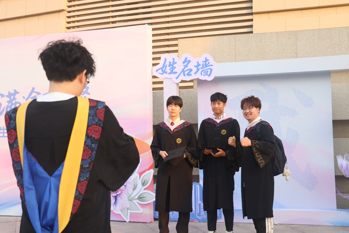典礼开始前,学校以“毕业歌会”形式送别2025届毕业生,《昨日青空》《追梦赤子心》《骄傲的少年》等11首经典歌曲让现场气氛温馨感人。学校在校体育馆副馆专门开辟了家长观礼区,千余名家长到场共同见证这一重要而幸福的时刻。体育馆外精心设置了“毕业生姓名墙”“一路生花”等多个拍照打卡区,毕业生与家长们纷纷合影留念,留下了在星空校园的珍贵离别瞬间。