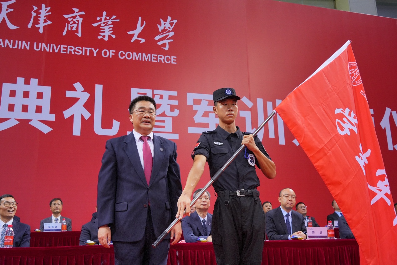 校党委副书记崔强向军训团授旗,标志着2025级本科生军事技能训练正式拉开序幕。