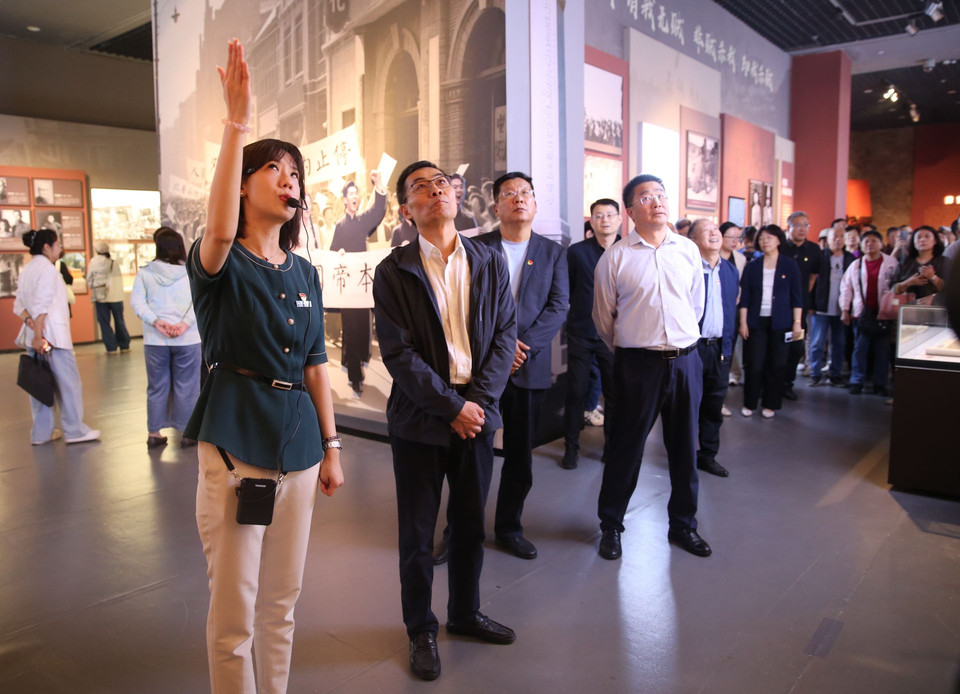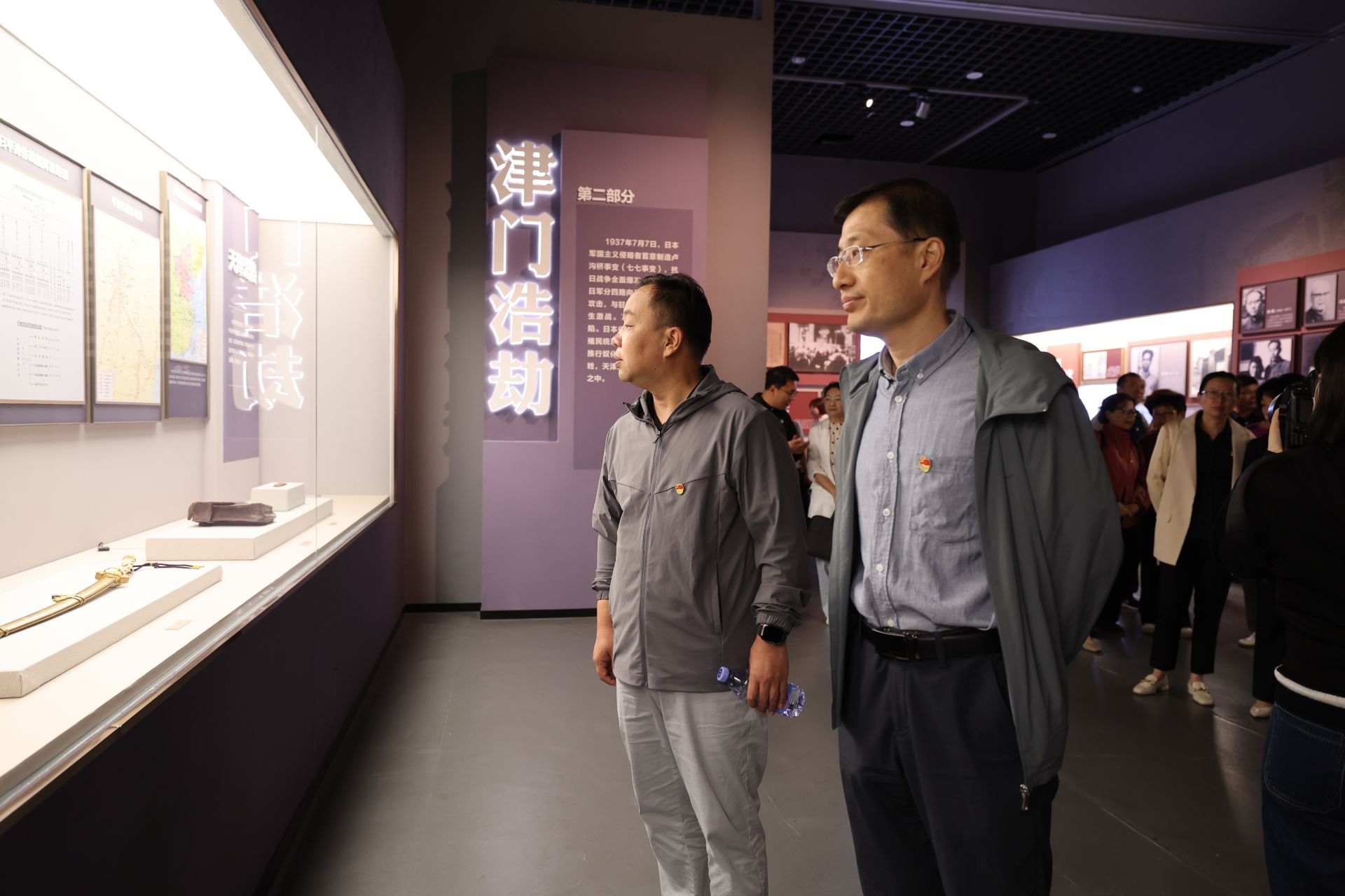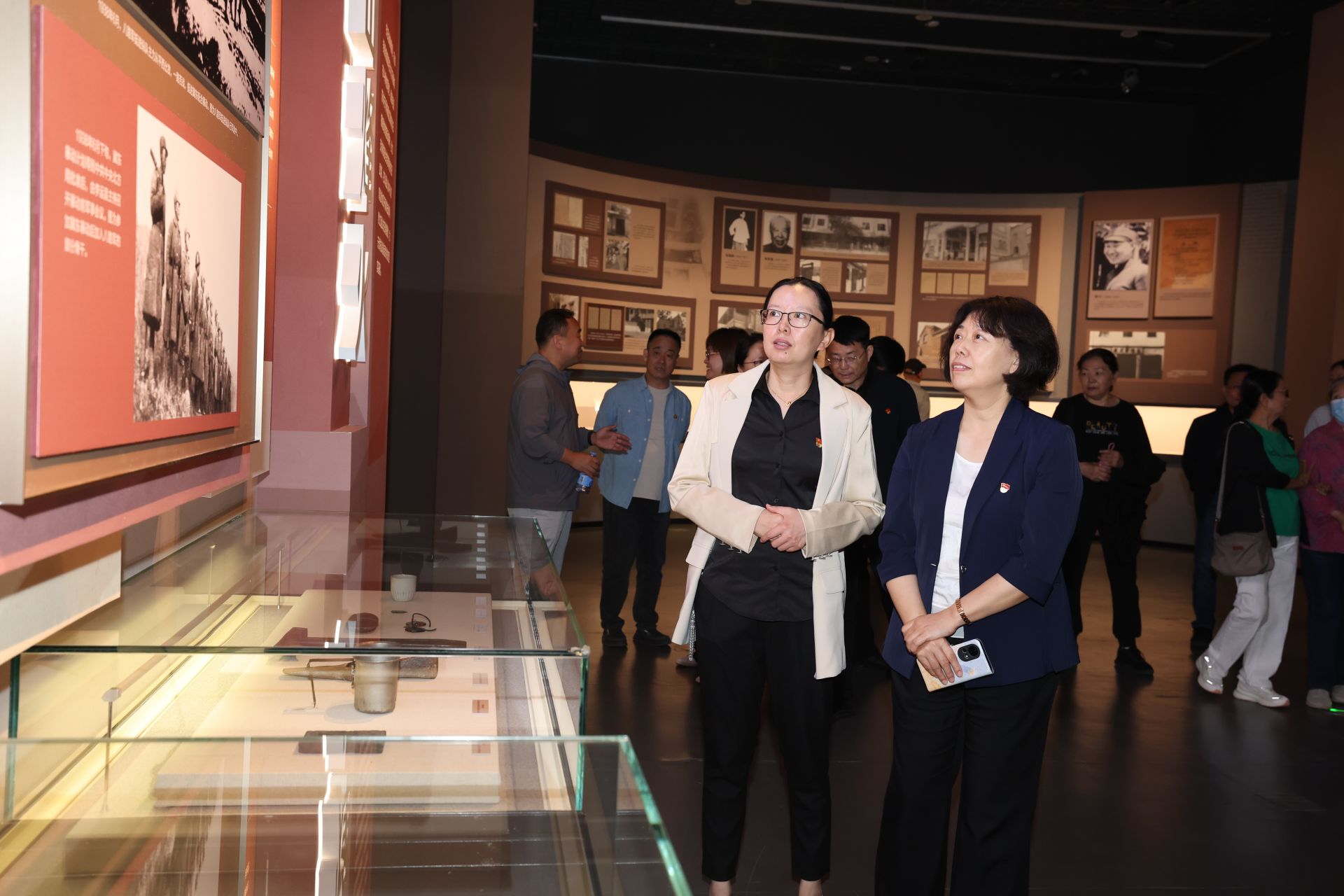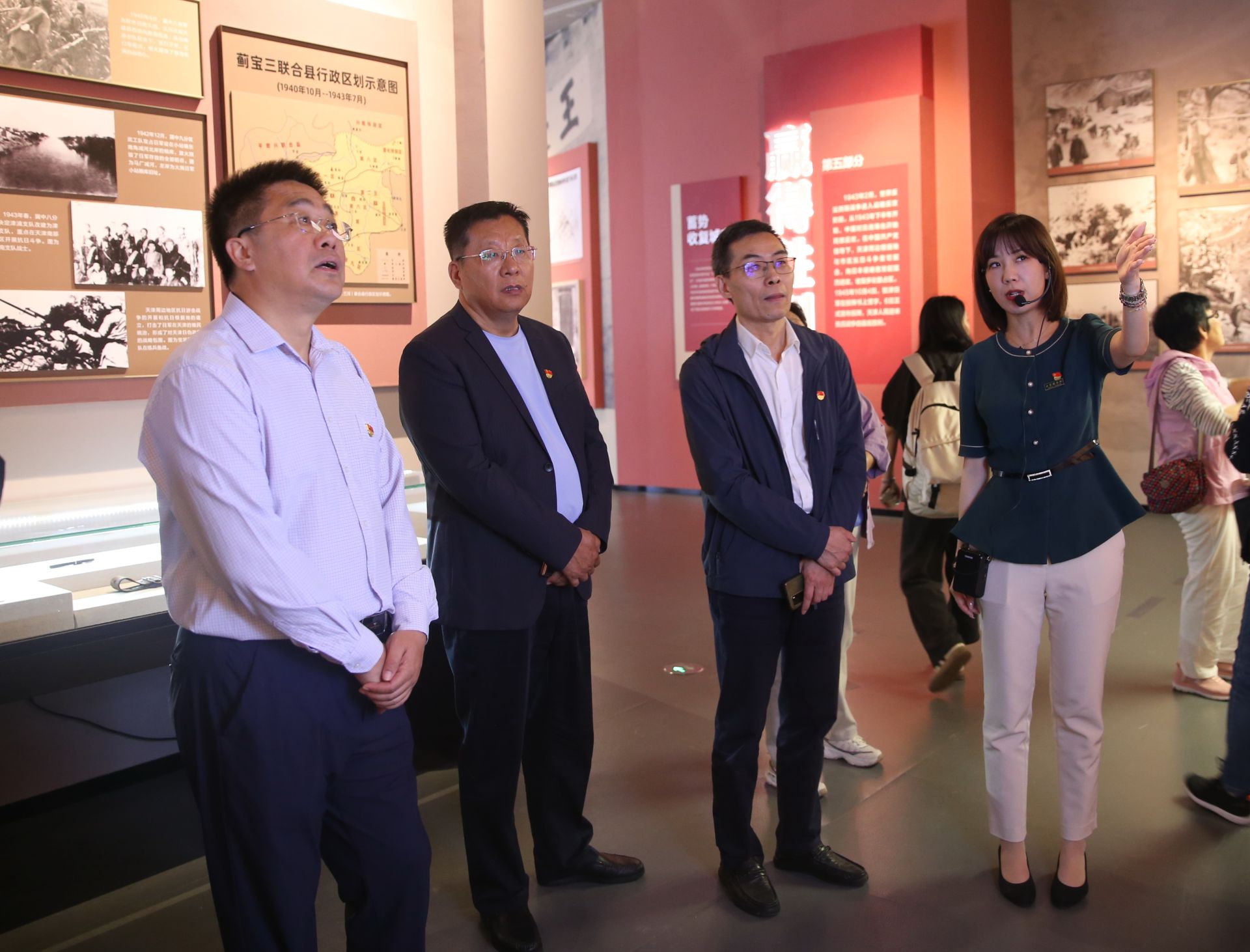 展览由“奋起救亡”“津门浩劫”“市区抗战”“盘山烽火”“赢得胜利”“抗战英烈”六个部分组成,通过丰富的文物展品和文献资料,生动展现了天津人民在抗战中不屈不挠的精神风貌和为民族解放作出的卓越贡献。大家跟随讲解员的引导,依次参观了展出的珍贵文物、历史照片和影像资料,从支援长城抗战,到收复察北失地,从盘山抗日根据地的斗争史实,到平津学生南下请愿的爱国壮举……一件件展品、一幕幕场景,让党员干部们深刻感受到革命先辈的坚定信仰和家国情怀,被那段波澜壮阔的历史所震撼,不时交流心得体会。