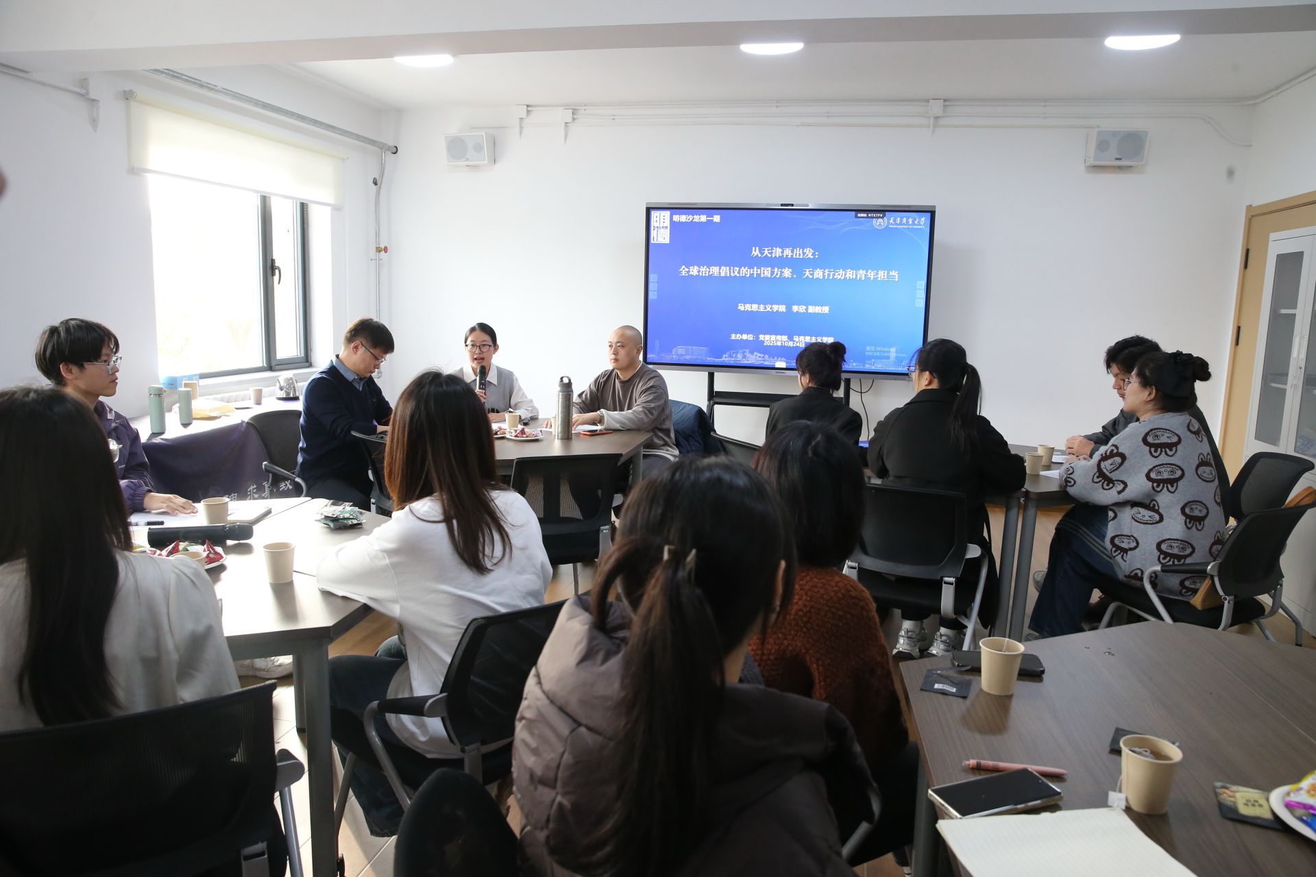10月24日下午,首期“明德沙龙”在马克思主义学院503会议室举办。沙龙围绕“从天津再出发:全球治理倡议的中国方案、星空行动和青年担当”主题,邀请了马克思主义学院副教授李欣担任首期主讲人,外国语学院教师李智勇、国际交流处干部陈仕哲作为互动嘉宾,经济学院、机械工程学院、马克思主义学院、信息工程学院、外国语学院的学生代表参加沙龙活动。