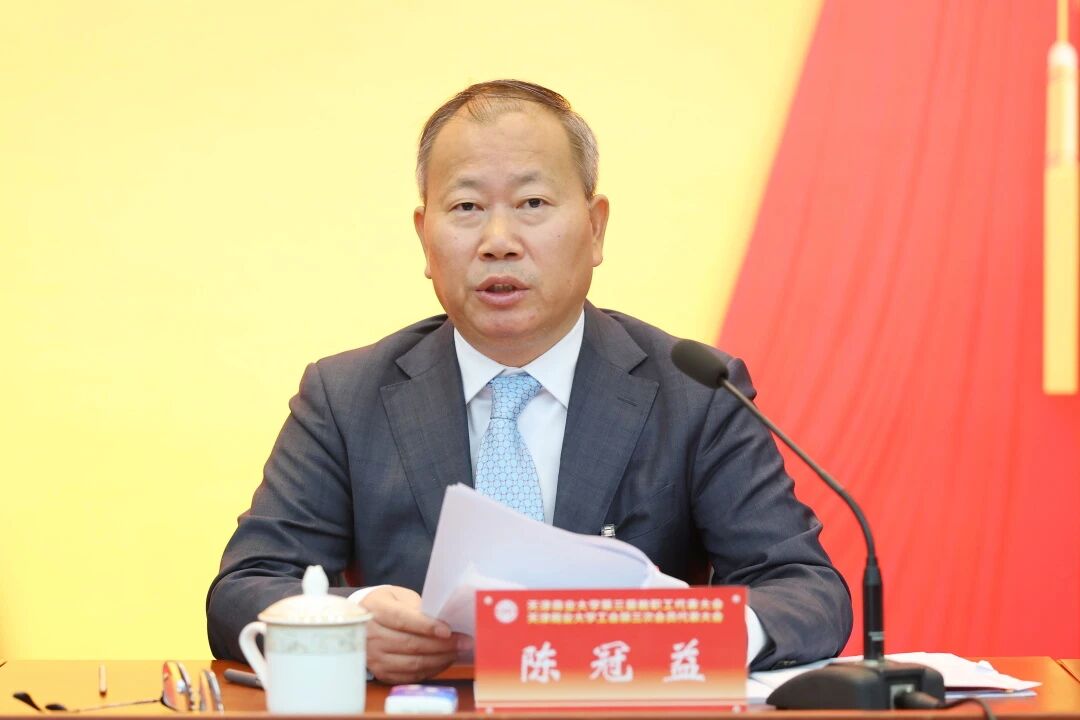 陈冠益作题为《锚定发展蓝图 凝聚奋进力量 奋力谱写特色鲜明高水平商业大学建设新篇章》的工作报告。报告回顾了二届一次“双代会”以来学校事业发展取得的显著成就,并对下一步工作进行了部署。报告强调,站在新的历史起点上,展望“十五五”,机遇与挑战并存。全校上下要深入学习贯彻党的二十届四中全会精神,按照学校第三次党代会提出的“高质量推进特色鲜明高水平商业大学建设”这一核心任务,坚持问题导向、目标导向、效果导向,强化战略思维,突出抓好“五大发展战略”,牢牢把握“认知为先、系统全面、唯实唯干、善作善成”的工作方针,着力抓好“九新行动计划”,全力推进学校高质量发展。