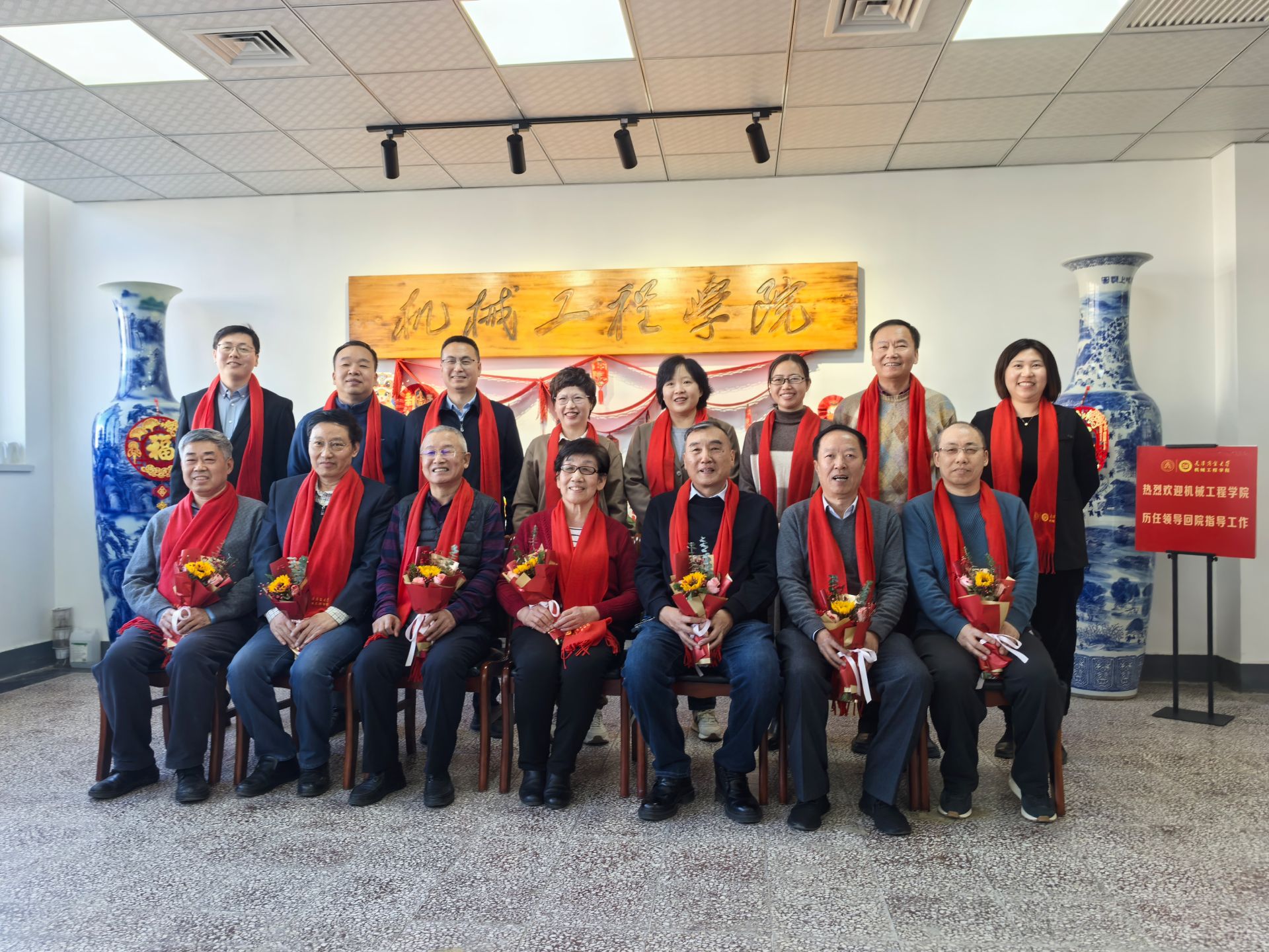 王立云向历任学院领导老同志们一直以来对学院发展建设的关心与支持表示感谢,并致以诚挚的新春祝愿。她表示,2024年机械工程学院在党建引领、科研创新、人才培养、师资队伍建设、产教融合等各方面取得佳绩,离不开学院全体教职工的努力付出,更是历任领导班子的艰苦奋斗的优良传统和务实创新的实干精神的传承体现。她强调,学院现任领导班子要接好“接力棒"、跑好“接力赛”,认真学习宣传、全面贯彻落实学校第三次党员代表大会精神,以本科教育教学审核评估为契机,在建校四十五周年、建院二十周年之际,守正创新、唯实唯干、善作善成,为学校高质量推进特色鲜明高水平商业大学建设贡献力量。她衷心希望老领导们一如既往关心支持学校工作,为学校发展建设多提宝贵意见和建议。