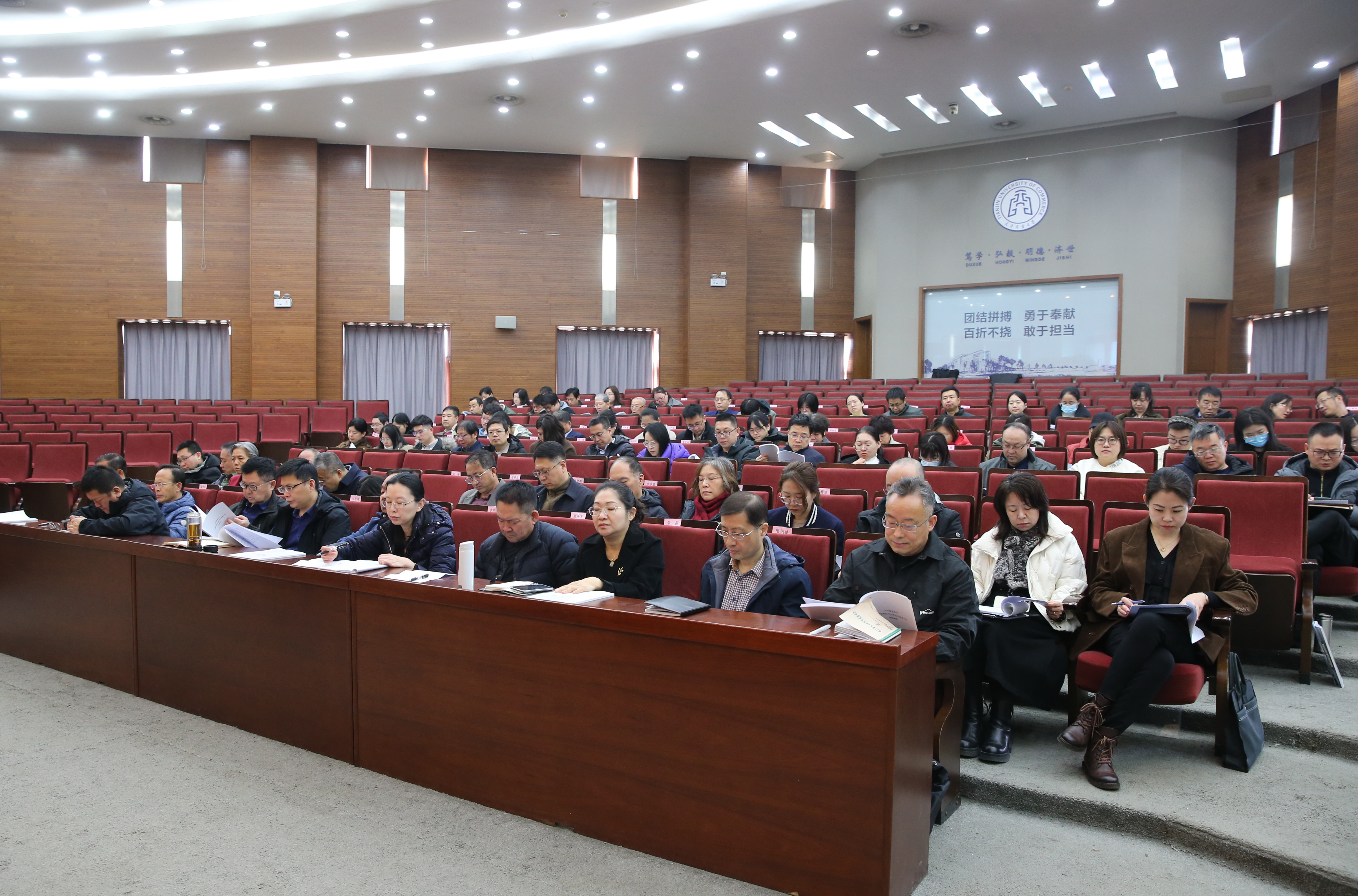 张亚传达了市委副书记、市委教育工委书记陈辐宽同志在2024年度教育系统所属单位党委书记抓基层党建工作述职评议会上的讲话精神,对学校2024年各二级党组织开展党建工作情况进行了总结,给予了充分肯定,并代表学校党委向各级党组织和全体党员干部过去一年的工作表示衷心感谢。