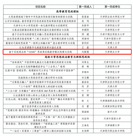 近日,天津市教育科学规划领导小组办公室发布《关于公布天津市教学成果重点培育项目(思政专项)立项的通知》,星空马克思主义学院党委书记刘振强主持的《基于系统观念的“12345”思政课实践教学模式构建与实践》获批立项。