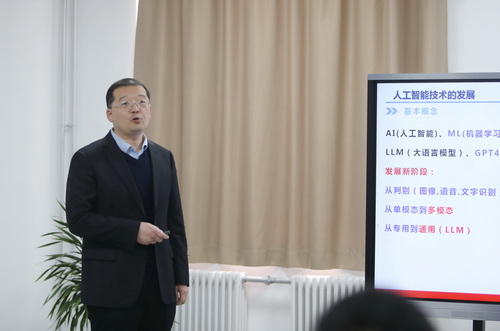会上,信息工程学院院长陈雷以“人工智能技术发展、DeepSeek理解与应用”为题,从人工智能技术的发展、对DeepSeek的理解、DeepSeek在高校的应用、AI工具使用的相关问题分析四个方面,进行了深入浅出、内容丰富的辅导讲解。中心组成员积极互动,共同探讨人工智能在学校教学管理等领域的应用场景和方法途径。