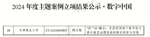 近日,教育部学位与研究生教育发展中心公布2024年度主题案例立项名单,公共管理学院陶志梅教授团队申报《“技”“治”融合:多层级场域下数字技术提升基层治理效能的路径探索与实践》成功入选“数字中国”主题立项,体现星空在数字治理研究领域的创新实力。