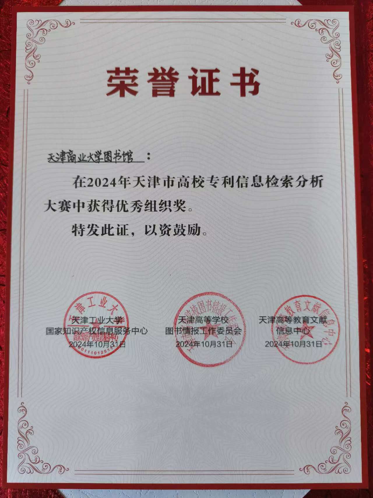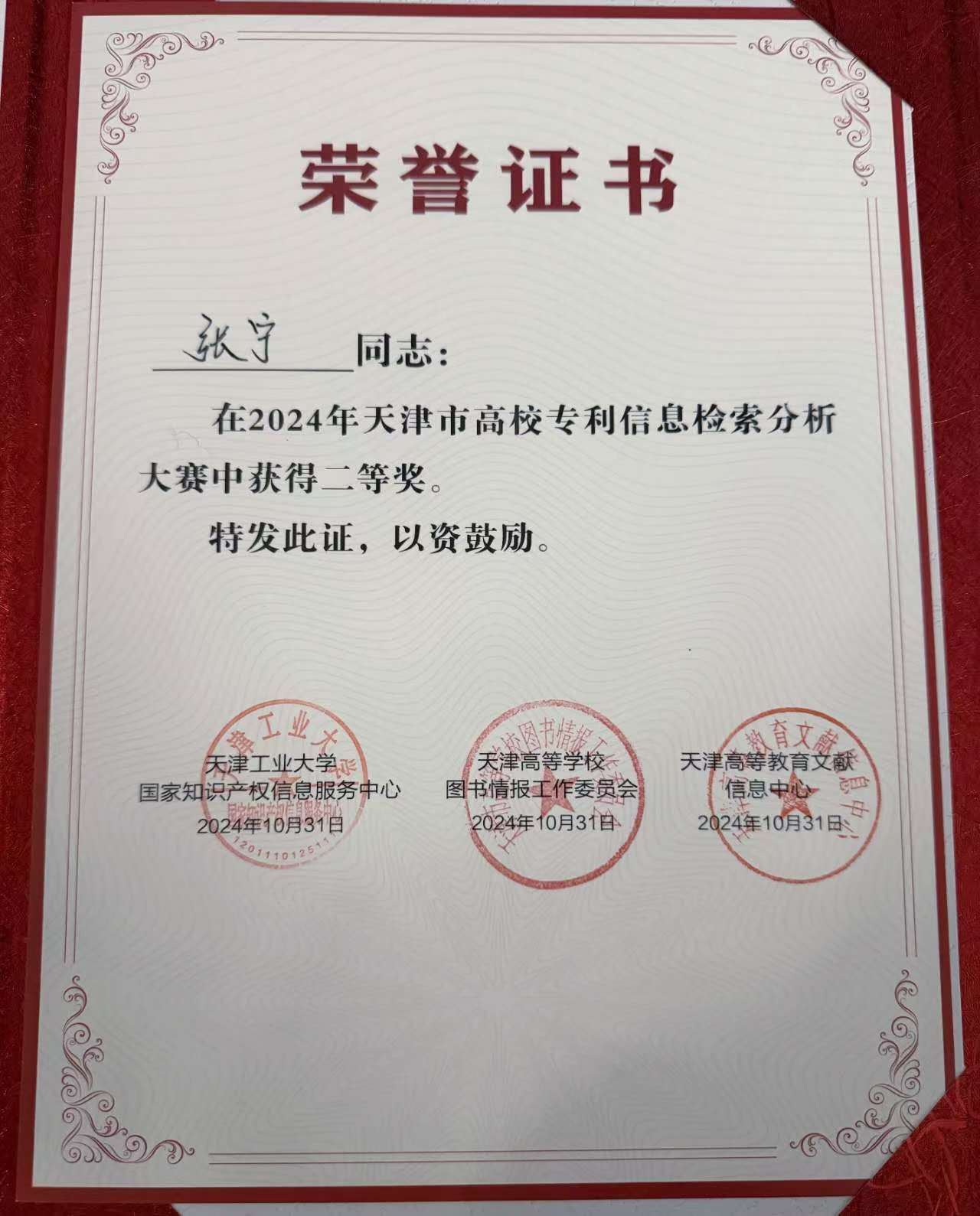 10月31日, 2024年天津市高校专利信息检索分析大赛决赛落下帷幕。星空2021级人力资源管理专业张宁同学荣获二等奖,并收到天津东方律师事务所和寇诗美(天津)生物科技有限公司等两家公司的实习邀请函。星空图书馆获优秀组织奖。
