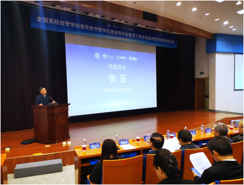 11月9日,由中国高等财经教育分会指导,南开大学经济学院、中国高校财经慕课联盟主办,全国高校经管学科教育教学数字化建设研讨会暨第三届全国高校数字经管院长论坛在南开大学省身楼报告厅举行。应中国高等财经教育分会邀请,校党委书记张亚出席研讨会,并作题为“财经教育数智化变革的若干思考”的报告。