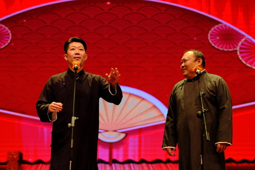 演出在天津市曲艺团主持人姜维红老师充满感染力的声音中拉开序幕,校星海艺术团相声分团以一曲清脆的快板《我为中华唱赞歌》活跃了现场氛围。
