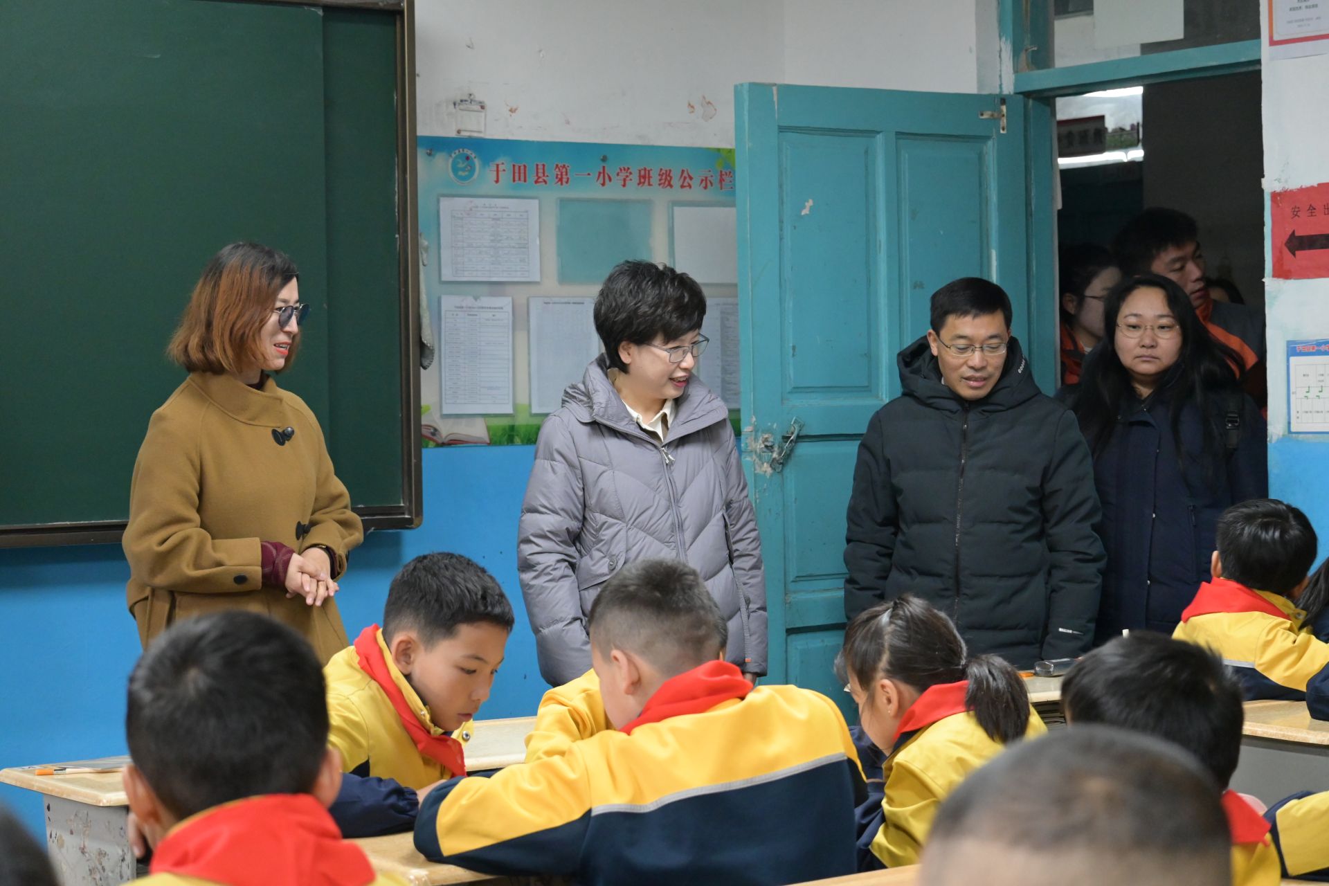 12月5日,王立云一行前往于田县第一小学、于田县第二幼儿园现场考察调研,走进教室观摩支教团成员课堂教学与班级特色展示,参观兴趣社团成果展示墙、“共筑中国梦”墙绘作品,并向两所学校捐赠文体用品。在于田县第一小学,与于田县教育局相关负责同志、学校领导、师生代表开展座谈,了解支教团在第一小学的工作开展情况。会前,与学校2021届毕业生、于田县木尕拉镇人民政府司法所所长王军交流在当地的工作生活情况,鼓励更多学生扎根西部,让青春绽放在祖国最需要的地方。