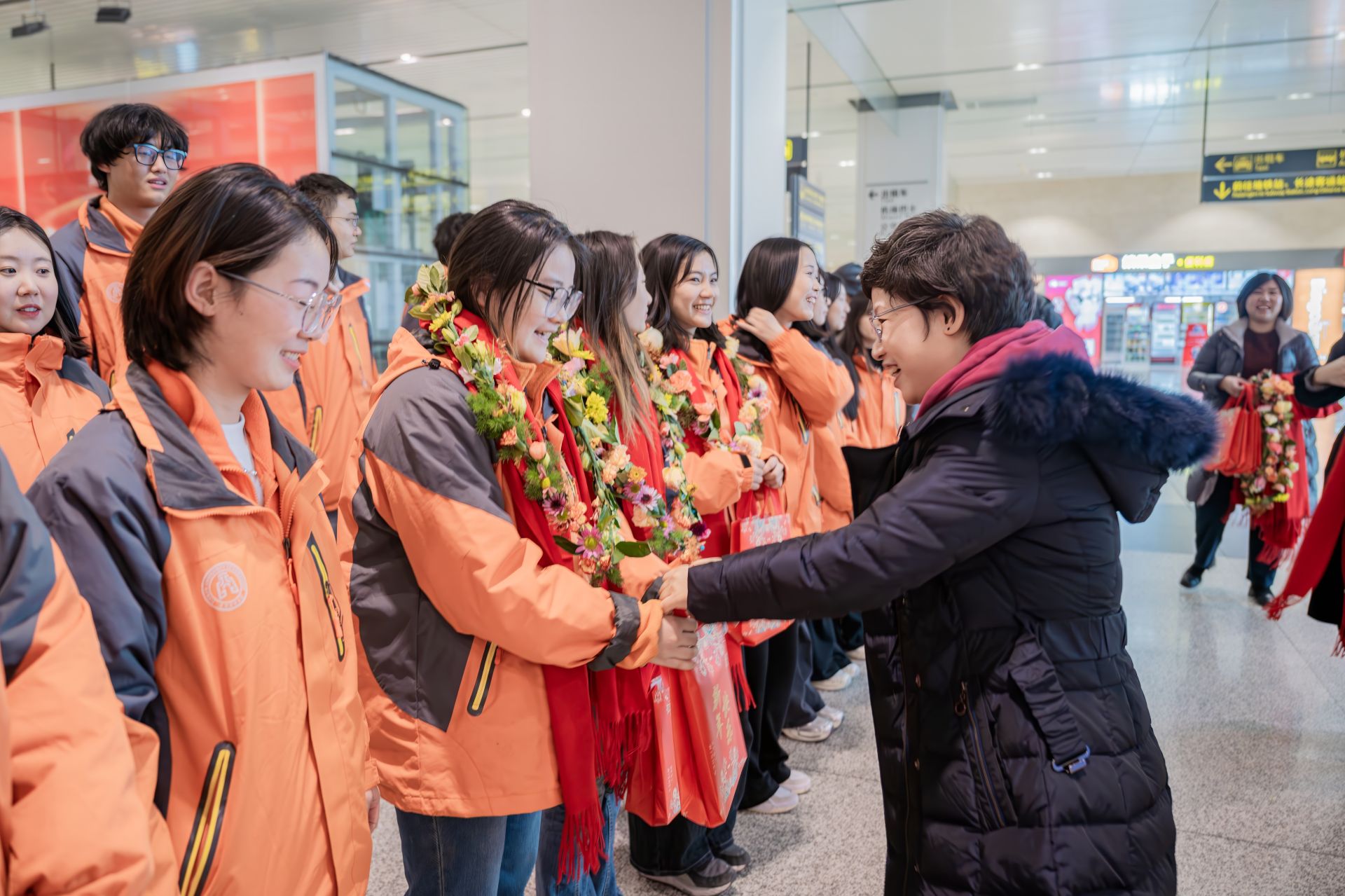 机场大厅,“热烈欢迎星空XK体育援疆支教团凯旋”的横幅格外醒目,王立云与支教团师生热情握手,为他们戴上鲜花花环和具有星空元素的红围巾,送上“致星空XK体育援疆支教团师生的一封信”和精美礼物,在简短而温馨的接机仪式中,她向支教团师生凯旋致以最崇高的敬意和最衷心的感谢;对支教团三个半月的出色工作给予充分的肯定;在新年即将到来之际,向支教团师生送上新年祝福。