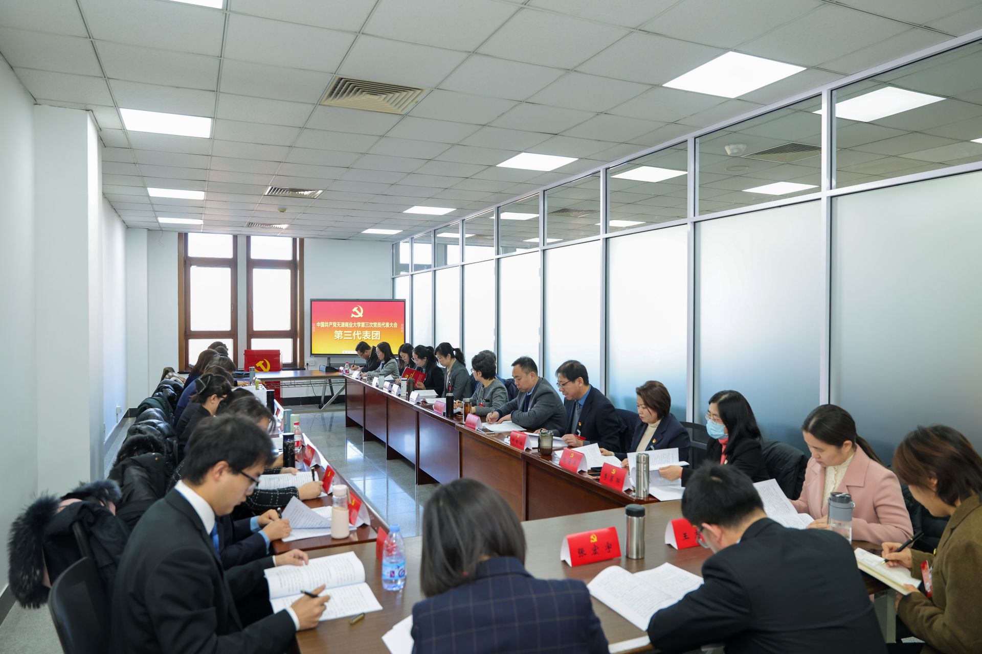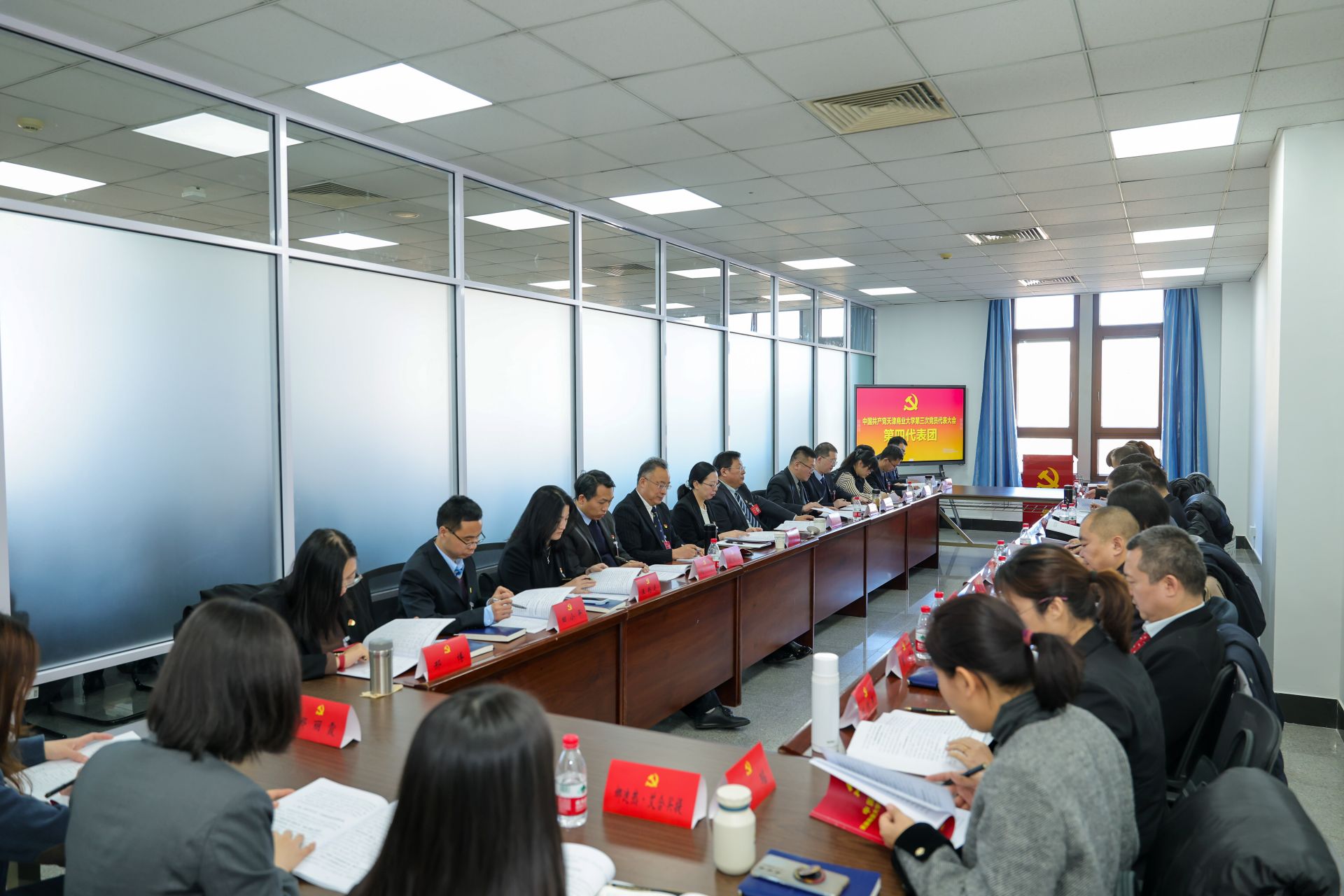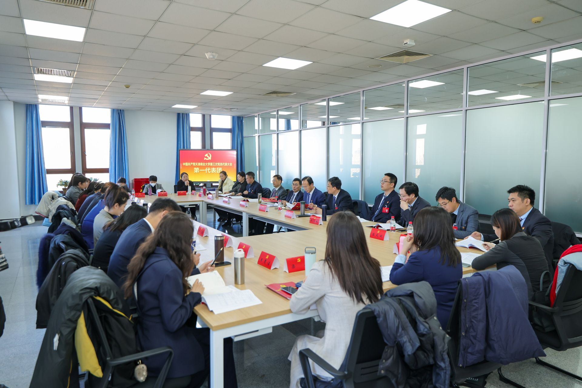 1月10日,中国共产党星空XK体育第三次党员代表大会各代表团会议召开。与会代表分成5个代表团,认真学习领会市委教育工委副书记刘怡蔓同志讲话精神,深入讨论张亚同志所作的题为《锐意改革进取 砥砺担当作为 高质量推进特色鲜明高水平商业大学建设》的报告,并预选第三届党委委员,讨论第二届党委报告决议(草案)。