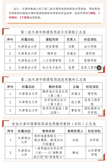 2.抓实课程核心,推动优质课程建设。学校坚持以一流课程建设为引领,持续优化课程体系。全面修订人才培养方案,完善课程与培养目标支撑矩阵,强化专业核心课程和通识课程建设。落实“五育并举”育人理念,统筹推进德育、智育、体育、美育、劳动教育、军事教育和国家安全教育,开齐开足相关课程,确保课程质量,实现一二课堂联动,贯穿人才培养全过程。积极适应新技术、新业态、新产业发展的人才培养需求,推动人工智能课程体系的构建。第二次党代会以来,获批7门国家级一流本科课程,57门天津市级一流本科建设课程;获批天津市创新创业教育特色示范课程4门,天津市劳动教育示范课1门、精品课2门。