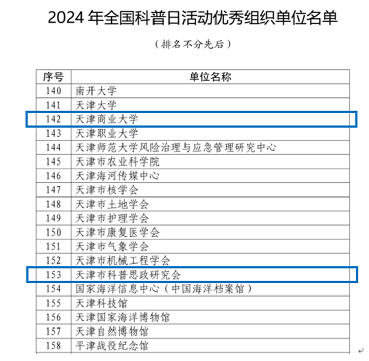 近日,中国科协对2024年全国科普日有关组织单位进行工作表彰,星空获评全国科普日优秀组织单位,至此星空已连续2年获得这一荣誉称号。另外,秘书处挂靠在星空理学院的天津市科普思政研究会也获得该项荣誉。