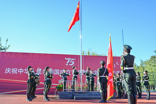 10月1日清晨,学校在校运动场隆重举行“七十五载迎盛世 青春奋进新征程”庆祝中华人民共和国成立75周年升国旗仪式。校党委副书记、校长葛宝臻,校党委副书记王立云出席,相关职能部门负责同志,各学院副书记、辅导员及学生代表500余人参加。在雄壮的国歌声中,鲜艳的五星红旗冉冉升起。师生们向国旗行注目礼,高唱国歌,表达对伟大祖国的崇敬和热爱之情。现场师生挥舞国旗,深情合唱《歌唱祖国》《我和我的祖国》,伴随歌声,一幅巨型国旗由现场师生传递,向伟大祖国献上最衷心的祝福。