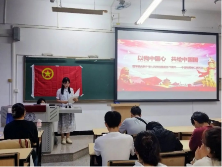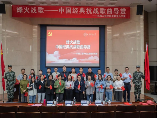 经济学院在科学会堂举办“青春献祖国,红歌颂辉煌”红歌合唱比赛,《我和我的祖国》《如愿》《我爱你中国》……学生们用嘹亮的歌声传递着青年学生的自信与担当,表达了对党和祖国的感恩与祝福。机械工程学院在图书馆国际报告厅举办主题音乐党课,党课以“讲授+领唱”形式对六首经典抗战歌曲进行鉴赏讲解,以歌叙史,用音乐向党向祖国致敬。