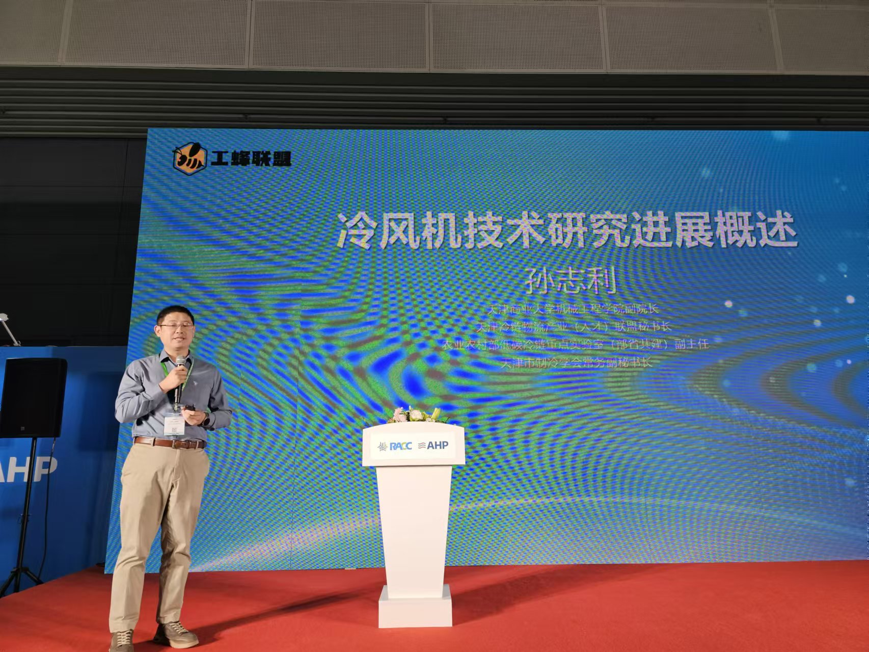 孙志利作题为《冷风机技术研究进展概述》的特邀报告。孙志利围绕冷库用高效冷风机技术进行报告,分析了国内外冷风机的设计和应用现状,提出了影响冷风机传热效率和制造成本的关键问题,讲解了星空在高效冷风机研发方面的研究基础和新技术。他表示冷风机是影响冷库实际能耗的重要换热器部件,并且在技术和制造水平上仍有较大提升空间,未来将针对冷风机的性能提升、优化设计以及标准化技术规范开展进一步技术推广与应用。
