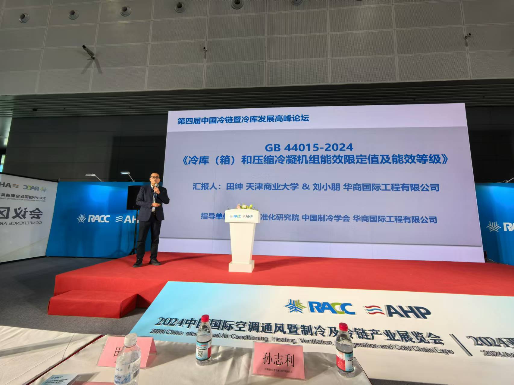 田绅作题为《冷库(箱)和压缩冷凝机组能效限定值及能效等级》的特邀报告。田绅详细解读了冷库(箱)行业背景和GB 44015标准内容,重点讲解了标准的制定过程、现状、技术要点以及潜在的实施方式,特别值得一提的是标准提出的能效评价和计算方法为全球首创。标准计划于明年2月份正式实施,但是在行业的影响力已经显现,田老师的现场解读也引发了在场多位嘉宾的进一步探讨的热情。