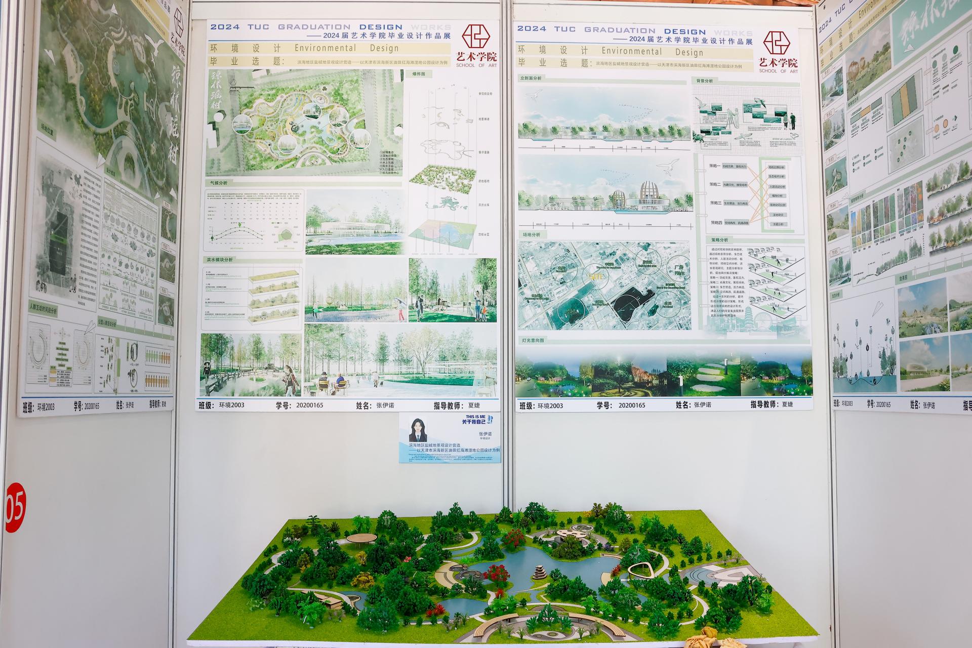 本次展览主题为“岁聿云暮”,不仅是表达时间的流逝,也是表达艺术学院学子对未来的美好向往和无限憧憬。希望同学们可以珍惜时间,把握当下;反思过去,成长自我;面向未来,勇敢前行。展览将持续至6月5日,分为四个展段,依次展出环境设计、视觉传达设计、工业设计、绘画、动画共五个专业的近400名毕业生作品。展览作品包含创作模型、视频、展板、交互、文创、绘画作品等。开幕式后,嘉宾们参观展览作品,并与现场师生进行深入交流探讨,对同学们充满创意的设计作品给予了充分肯定。