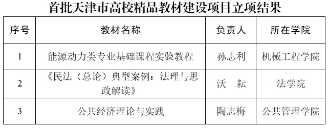近日,天津市教委公布了首批天津市普通高校精品教材建设项目立项结果,共立项57项,星空3个项目成功获批。