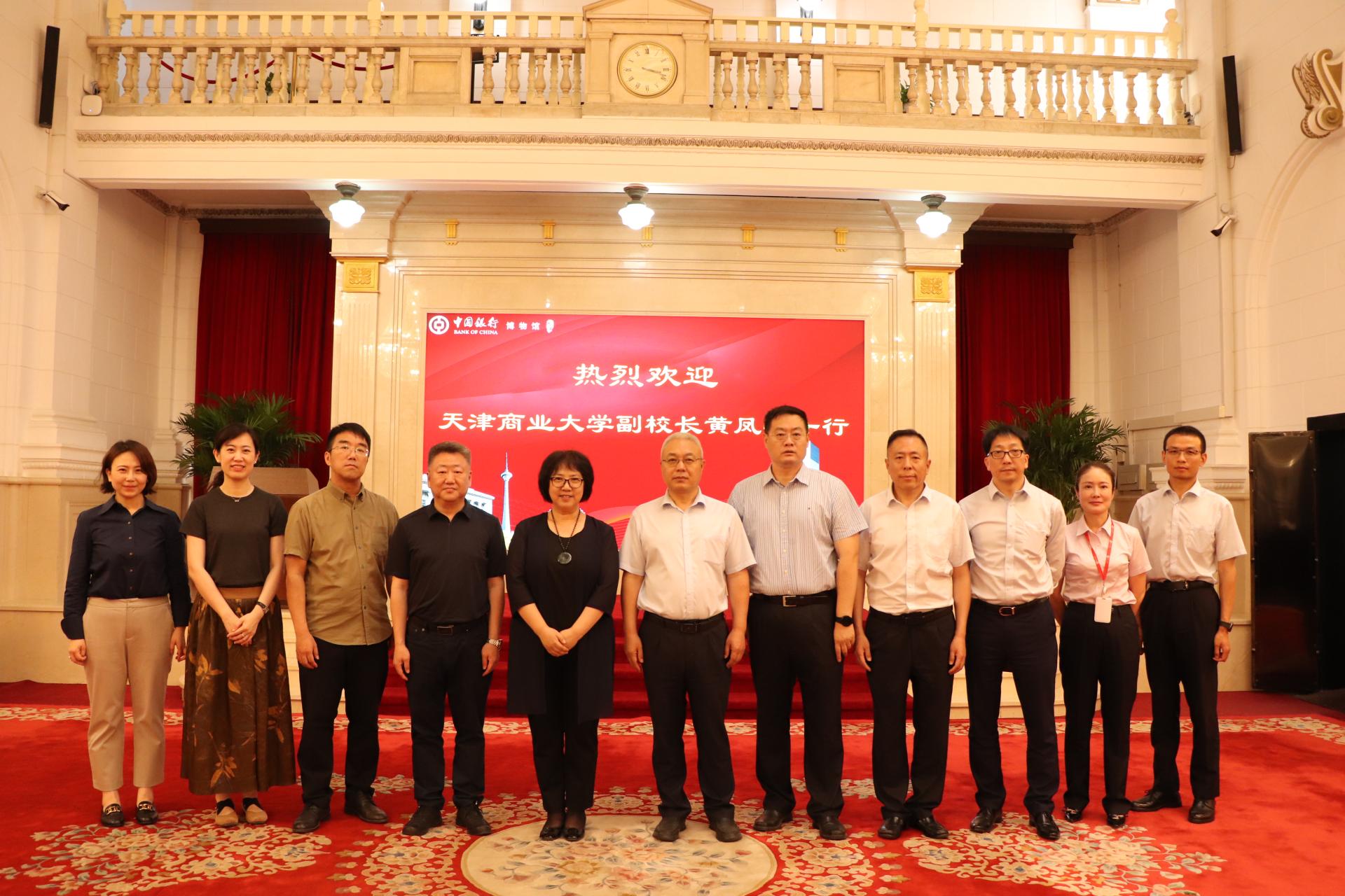 6月4日下午,副校长黄凤羽带队赴中国银行天津分行走访调研,开展访企拓岗活动。中国银行天津分行总审计师王彦君,行政事业机构部总经理李响,普惠金融机构部副总经理焦骏,人力资源部主管胡太军,中国银行(南开支行)行长陈大川、副行长刘克晔,会计学院领导班子成员和财务处主要负责同志参加。