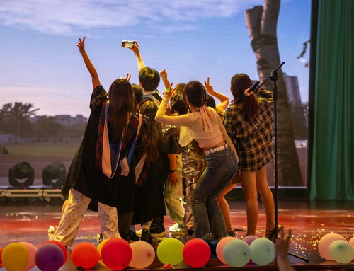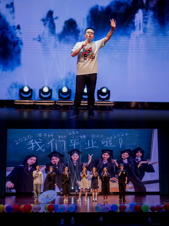 第三篇章“圆梦·奔赴山海”:舞台剧《假如有台时光机》以演员生动的演绎引起现场观众情感共鸣,表达了对校园的不舍与对未来的期许;歌曲《最炫民族风》《全是爱》《奢香夫人》《海阔天空》在旋律响起的瞬间就让人心潮澎湃,现场沸腾燃爆,将整台演出推向高潮。街舞串烧《Batter up》《LALALALA》,青春洋溢,活力四射;歌曲《我们都拥有海洋》表达了对别离的不舍和祝福,引起了同学们彼此间的不舍之情。最后,《放心去飞》歌声徐徐响起,由13个学院团委书记和辅导员老师代表演唱,表达了对毕业生同学们的衷心祝福。