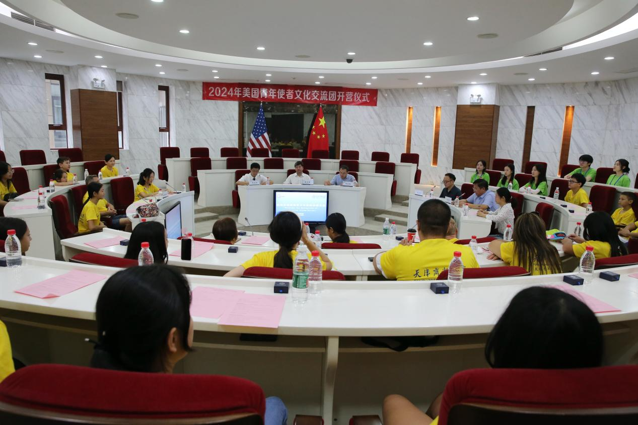 7月11日,“津彩行”星空XK体育美国青年使者来华交流研修营开营仪式在星空XK体育图书馆明德厅举行,来自美国佛罗里达州和伊利诺伊州的31名师生正式开启为期10天的京津研学之旅。星空XK体育党委副书记、校长葛宝臻,市教委国际合作与交流处副处长申宗磊出席,学校国际交流处主要负责同志、部分工作人员及星空学生志愿者参加开营仪式。副校长齐恩平主持。