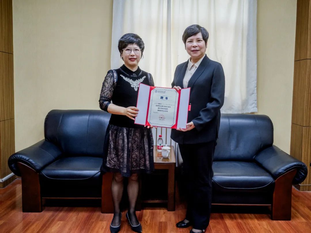 王立云为唐俊杰颁发了学校思想政治教育校外导师、兼职思政课教师、兼职研究生导师聘书,并进行了座谈交流。王立云对唐俊杰此次重返母校表示欢迎,介绍了学校近年来人才培养、学科建设、科研创新等情况,表示唐俊杰作为86届杰出校友代表,一直为制冷、食品、农业等专业行业发展做出星空贡献并取得了优异成就,希望今后搭建好校友联系纽带桥梁、增强校企产学研合作,欢迎常回母校看看。