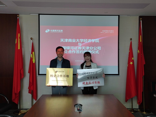座谈会期间,双方围绕校企联合共建就业实习基地、产教融合人才培养、证券财经类课程设计等方面进行了深入探讨,对今后校企合作模式达成了合作意向。经济学院主要负责同志代表学院与中国银河证券天津分公司签署了校企合作框架协议,并进行了校企合作基地、就业实习基地的揭牌仪式。