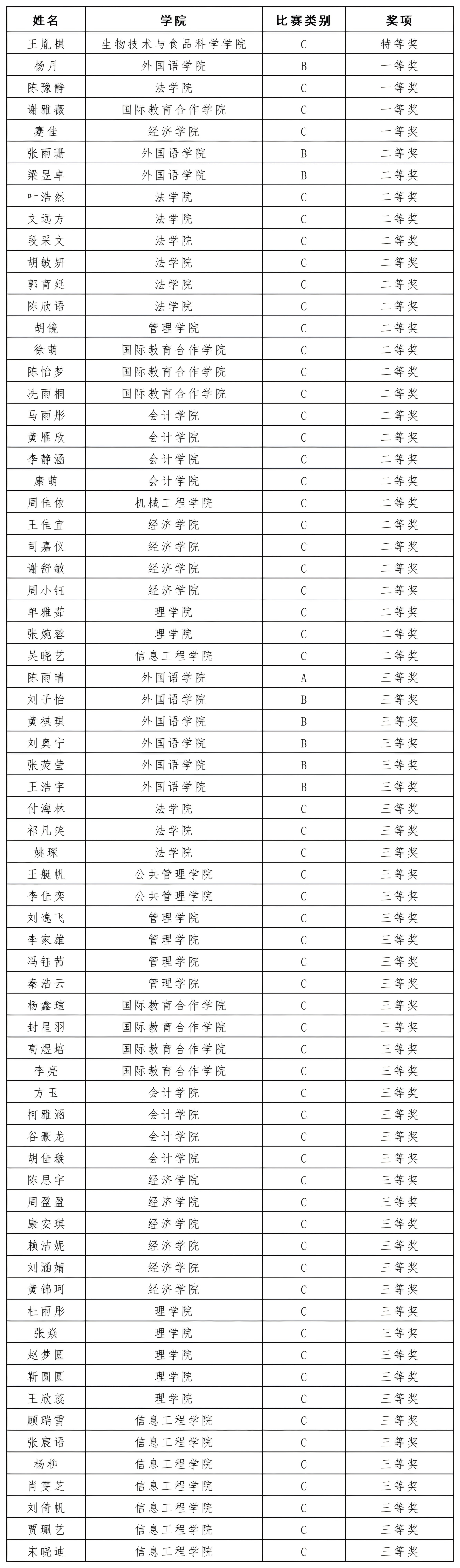 外国语学院一贯高度重视学生英语应用能力培养,以赛代练、以赛促学,以竞赛为抓手,不断提升人才培养质量。本次竞赛成绩的取得,既展现了星空学子扎实的英语功底和良好的综合素质,也彰显了学校在推进教育教学改革、创新人才培养模式方面取得的显著成效。外国语学院将以此次竞赛为契机,进一步落实立德树人根本任务,组织开展更加形式多样的英语实践活动,为培养具有国际视野和跨文化交际能力的高素质应用型人才提供有力支撑。(审稿:刘桂涛)