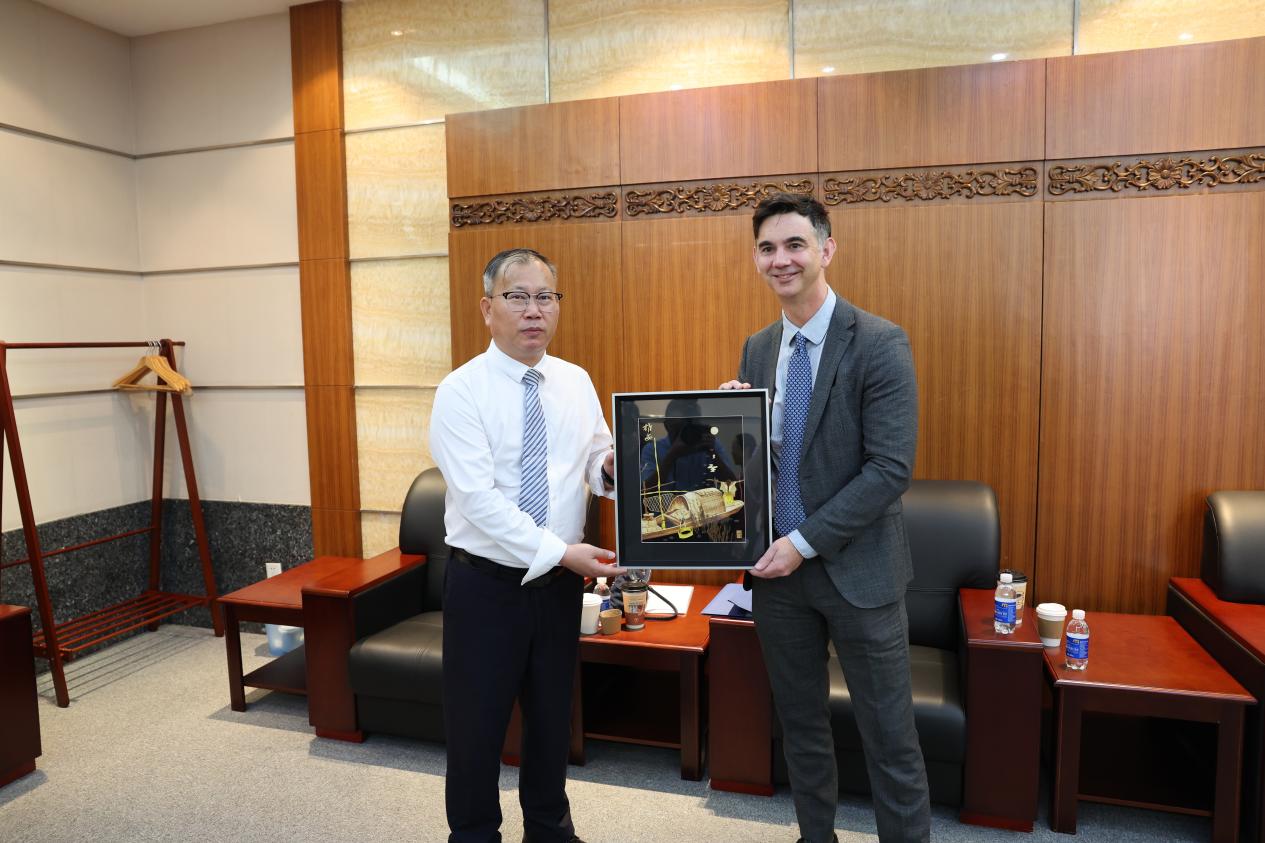 毕业典礼前,陈冠益和Mike就合作办学项目的未来发展进行了广泛而深入的会谈,双方一致同意深化国际交流,提升办学质量,推动财务管理(中澳合作)专业建设向更高的层次和更广的领域迈进。会谈后两校领导互赠了礼物。(审稿:乔秀梅)