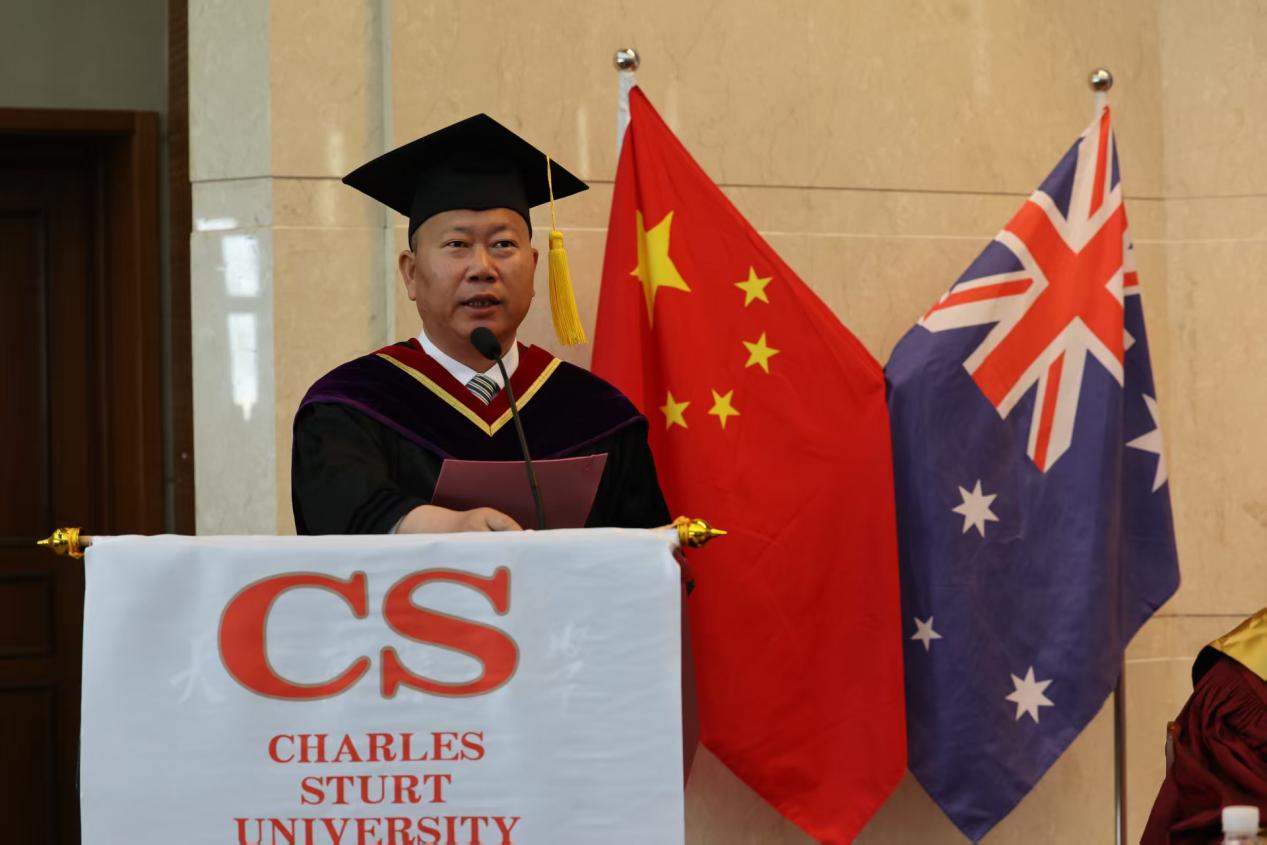 毕业典礼上,陈冠益向顺利完成学业的同学们表示热烈祝贺,并向在同学们成长和进步过程中提供支持的查理斯特大学和星空XK体育教职工和学生家长表示衷心感谢。他回顾了中澳合作项目的发展历程,强调该项目融合了双方学校的优质教育资源,为学生提供了国际化视野与专业技能并重的学习平台。他指出,在合作过程中,双方秉持着优势互补、共同发展的原则,不断优化课程体系,引入澳方先进的教学理念与方法,使学生能够更好地适应全球化的商业环境。他鼓励同学们在工作中增长才干,在奋斗中实现梦想,成为实现中华民族伟大复兴的生力军。