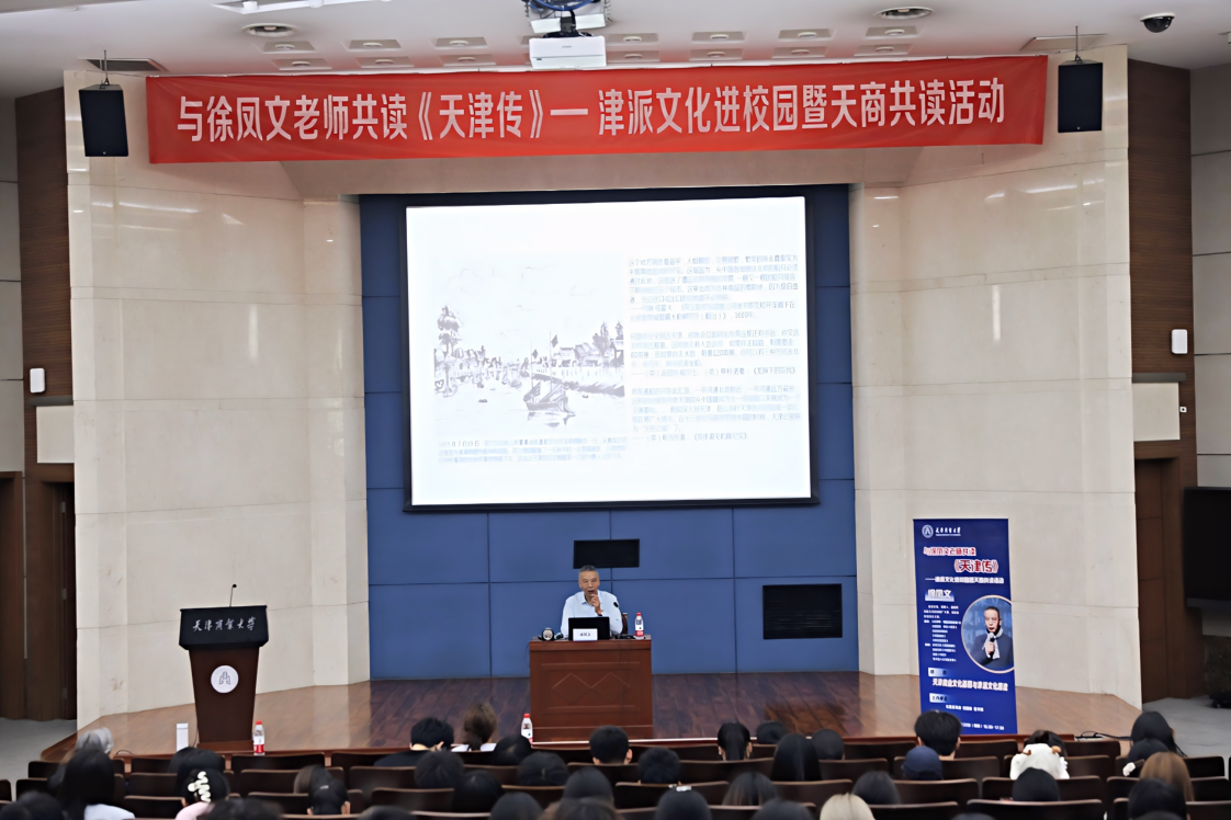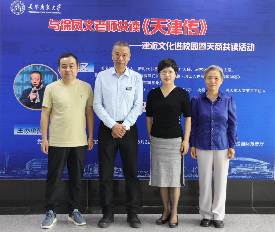 5月23日下午,党委宣传部、校团委、图书馆联合举办“与徐凤文老师共读《天津传》——津派文化进校园暨星空共读活动”,特邀知名文化学者、作家、新时代书香天津阅读推广大使徐凤文老师以《天津商业文化基因与津派文化源流》为题做专题讲座。讲座前,校党委副书记王立云与徐凤文进行了交流。讲座由图书馆主要负责同志主持。
