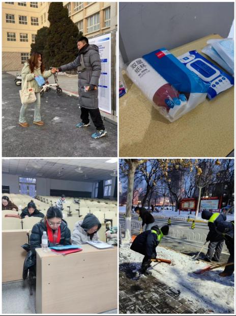 以生为本,贴心服务。为方便考生提前了解2024年考研新变化,做好考前准备,学校通过网站、公众号、研招网站内信等多种渠道推送考场规则、条形码粘贴、考前准备、安检入场、防寒保暖等考试公告及温馨提示。为应对低温天气,学校组织队伍对赴考相关通道及考试楼周边积雪进行清除,消除安全隐患。考试期间,学校临时开放校内停车场,允许校外考生进校停车,为提前到达考点的考生开放考生休息室并提供热水,减少考生户外等候时间,为户外等候的考生发放暖贴。在考场门口放置湿巾、口罩、速干手消毒液等物品,考试期间及时调整空调温度,安排医疗值守,全方位做好服务保障工作,为考生营造温暖舒适的考试环境。(审稿:宗毅)