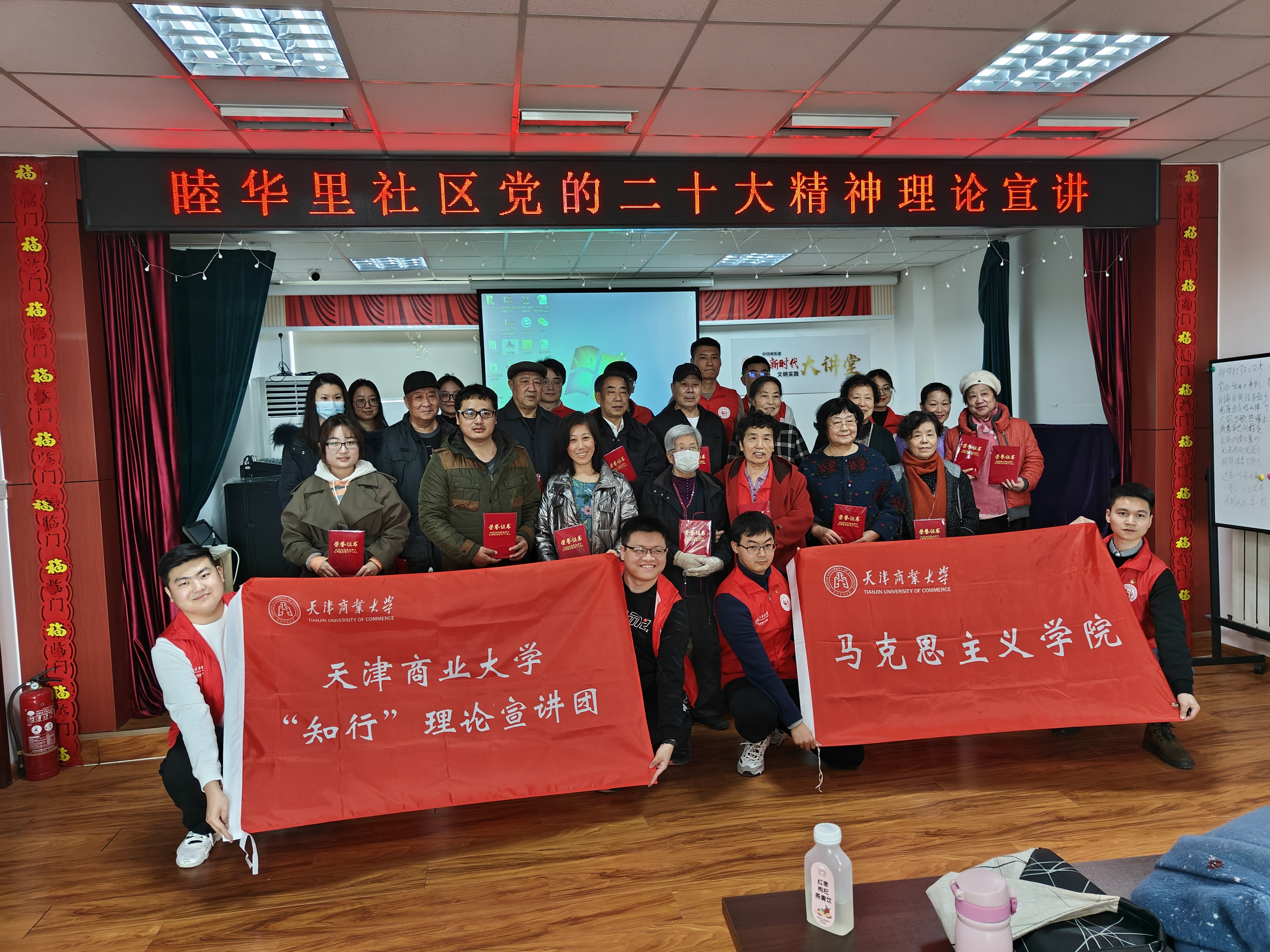 宣讲团积极探索理论宣讲形式,让理论宣讲跨越时空限制,形成覆盖“线上+线下”的立体化理论宣讲平台矩阵。充分利用新媒体平台,在学院公众号开设“宣讲二十大 马院青年说”专栏,由宣讲团成员选题、设计、录制,累计推送36条、时长达500余分钟的理论宣讲微视频,点击收看5000余人次;走进天津市三条石历史博物馆、天津觉悟社纪念馆录制十余部优质理论宣讲课,参与教育部高等学校思想政治理论课程教学指导委员会组织的“千马廿行”全国高校马克思主义学院青年学子联学联讲党的二十大精神系列活动,录制的2部作品获评“入围奖”,在“青梨派”等全国性网络平台进行展示;积极参加天津市网络名师工作室建设,在抖音平台推送微视频,产生良好的社会影响。宣讲团积极走出校园,开展“订单式”和“菜单式”宣讲,如在北辰区瞰景园开展《弘扬伟大建党精神》宣讲,在瑞景中学开展《点点星火忆初心 延安精神代代传》8场系列宣讲,在红桥区睦华里社区开展《中国式现代化的内涵及过程》宣讲,在蓟州区北赵各庄村开展《传承老字号发展 弘扬中华优秀文化》宣讲,并先后制作解说图片展板12块,发放宣传手册500余份。