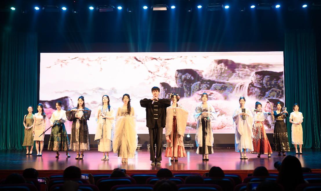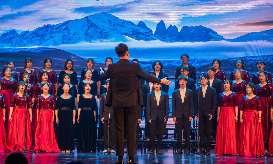 诗音画《岳阳楼记》揭开了第三篇章,一幅八百里洞庭浩瀚飘渺的美丽画卷徐徐展开。合唱《莫尼山》广阔悠远、动人心弦,呈现了青草连绵的草原风光。情景朗诵《梦启星空》及歌曲《少年中国说》,气贯长虹的青春宣言、慷慨激扬的青春歌声,展现了新时代大学生站在人生新起点上接过历史接力棒、不负青春韶华的坚定信心与决心。