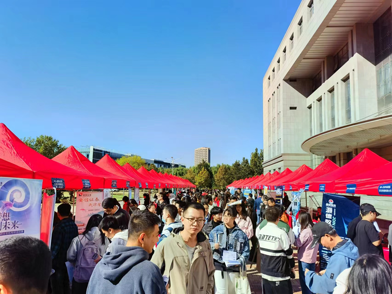 10月20日上午,招生与就业处、经济学院联合天津市就业促进会在学校图书馆后广场举办秋季线下双选会。副校长黄凤羽,天津市就业促进会秘书长曹睿、调委会主任张雪松,经济学院领导班子及毕业班辅导员参加本次活动。