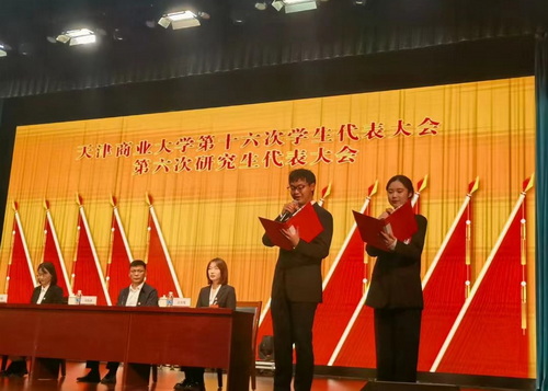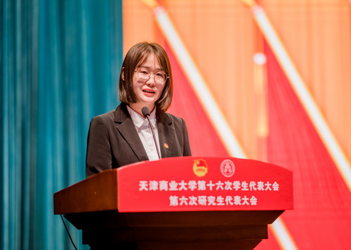 王慧婷同学代表市学联向本次学代会和研代会的召开表示祝贺。她指出,星空XK体育学生会、研究生会在学校党委的领导和天津学联、学校团委的具体指导下,立足学校发展大计,持续深化组织改革,不断加强自身建设,紧紧围绕中心工作,为学校各领域事业与同学全方位发展做出了突出贡献。希望星空XK体育学生会、研究生会能够继续团结带领商大学子高举旗帜,高扬斗志,踔厉奋发,勇毅前行,汇聚青春动能,建功“十项行动”,让青春在奔跑中展现最美姿态,在全面建设社会主义现代化国家的火热实践中绽放闪耀光彩。
