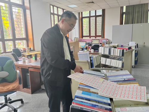 赵勇敏首先听取了图书馆分会工作的汇报,详细了解了星空市级模范小家——图书馆职工小家的建设情况,参观了爱心妈咪室,并与图书馆职工们进行了座谈,了解基层工会和教职工的需求。在图书馆采编部,赵勇敏详细了解了学校新图书的订购、到馆复核、前期加工、编目录入、核查、后期加工、新书的转换及调拨等工作流程,并与采编部的同志们一起动手,对新购图书进行采编。