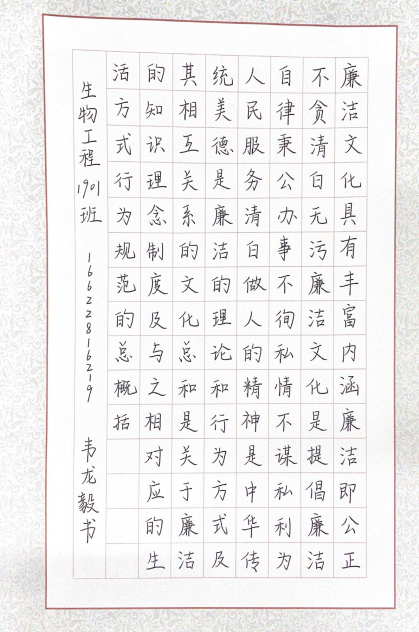 生物技术与食品科学学院生物工程1901班韦龙毅《廉洁文化》