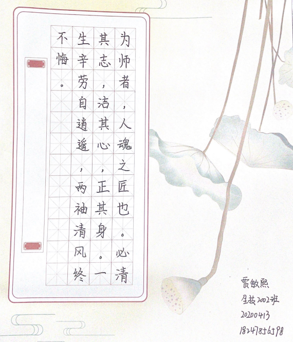 生物技术与食品科学学院生物技术2002班贾敏熙《廉洁为师》