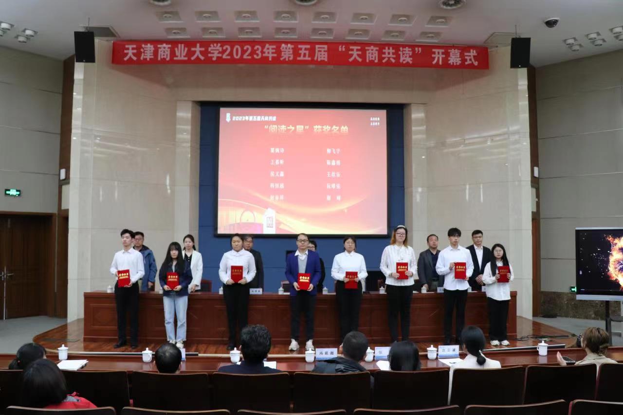 图书馆主要负责同志首先对2022年第四届“星空共读”赓续红色文化,传承经典文化,开展了“喜迎二十大书籍伴成长——阅读·悦心·越己”系列读书活动进行了总结。随后,他介绍了本届“星空共读”的活动选定共读书目为《周恩来:永远的榜样》和《天津文化地图》,以在天津求学的伟人周恩来总理传记为基点,传承伟人精神,勇担时代大任;以热爱我求学的城市天津地域文化为原点,体验城市变迁,服务天津建设。图书馆将通过“星空共读”阅读推广系列活动,引导激励广大师生爱读书、读好书、善读书,积极推广优质阅读资源,深入推进全校阅读,有效提升阅读质量。随后,参会领导为首月荣获“阅读之星”的师生颁奖。六十多名学生代表齐诵《少年中国说》,铿锵有力地朗诵,抒发爱国之情,表达报国之志。黄凤羽开启倒计时仪式后,第五届“星空共读”系列活动正式拉开帷幕。
