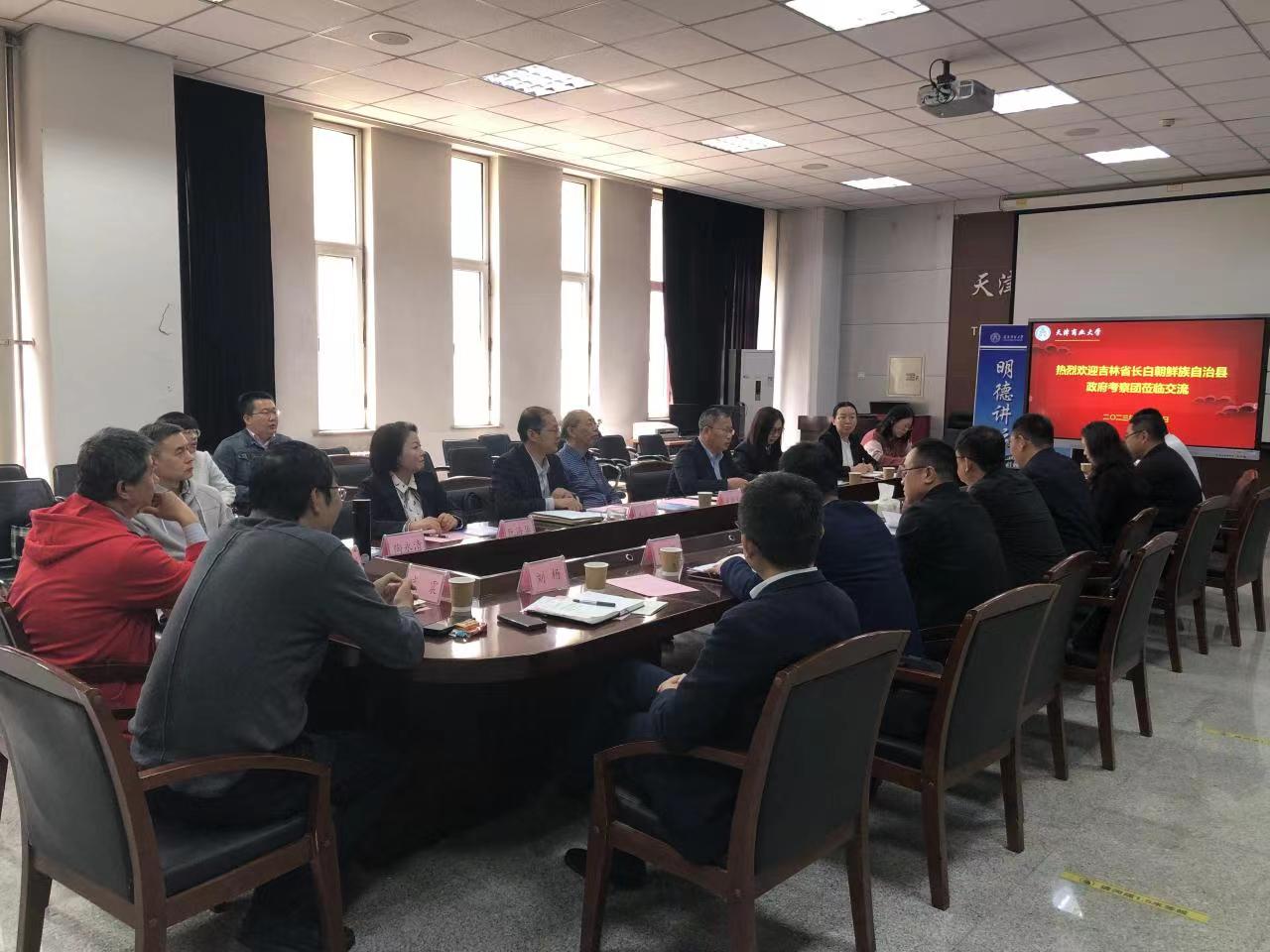 陈冠益首先对长白县政府一行的到访表示热烈欢迎,重点介绍了学校发展情况、人才培养特色以及学科建设情况,从技术创新需求、科技平台共享、科研成果转化、科技人才队伍等方面与长白县政府进行了探讨交流,愿意充分发挥高校人才、科研、资源等优势助力长白县绿色产业体系建设。