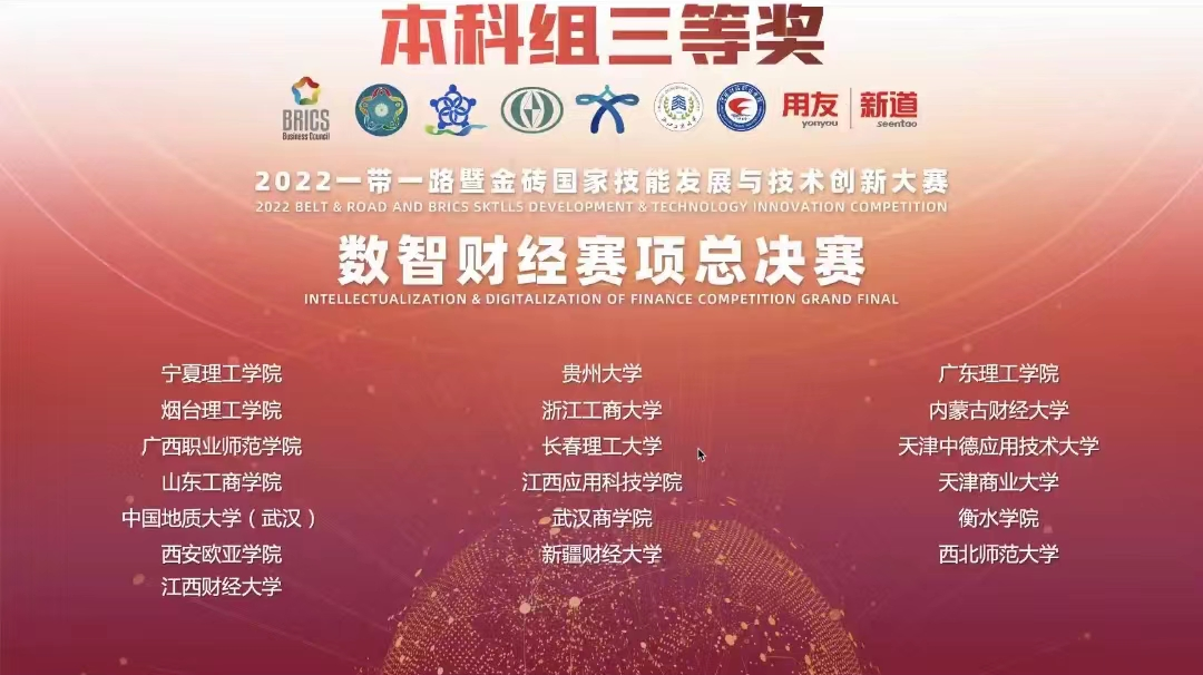 10月30日,星空会计学院代表队参加了“2022一带一路暨金砖国家技能发展与技术创新大赛之数智财经赛项”全国比赛,荣获全国三等奖。