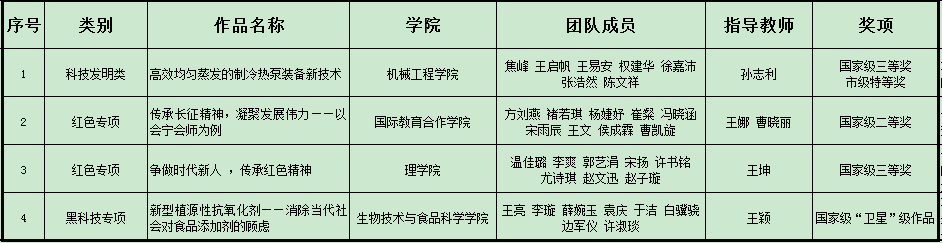 第十七届“挑战杯”全国大学生课外学术科技作品竞赛获奖作品名单