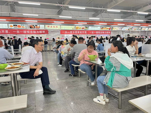 “你觉得食堂的饭菜好吃吗?”“价格贵不贵?”“对食堂服务有没有意见、建议呢?”“来学校后有没有什么困难?”......9月8日中午,正是全校师生午餐时间,校领导张亚、葛宝臻、蒋宗文、吴海东、齐恩平、陈冠益分别深入学生食堂,来到同学们中间共进午餐,面对面谈心交流。