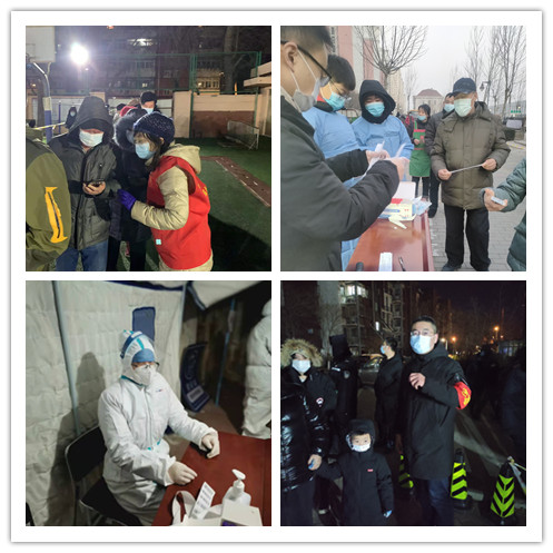 新冠疫情来势汹汹,学工部党支部闻令而动,勇挑重担,“硬刚”奥密克戎。全体党员不忘初心、牢记使命,用行动践行党员的责任与担当,充分发挥党员的先锋模范带头作用。1月13日凌晨,王雨薇同志接到下沉社区通知,安置好年幼的孩子,立即投入到疫情防控工作中。从13日参加培训,学习核酸检测登记流程,到14日开展社区入户调查工作,详细统计近100户人家的核酸检测情况,再到15日投入第三轮核酸检测高效完成400余人信息采集工作,她的工作热情丝毫未减。马怡然同志接到下沉通知时面临着公公刚出院需要照料、2岁的孩子需要看护以及自己的父母和爱人的母亲都被抽调到防疫一线,身边无人可依的困境,但她仍克服重重困难,毅然将2岁孩子托付给亲戚照看,就近下沉到社区开展防疫工作。有核酸筛查任务时,负责维护核酸筛查现场秩序,协助医护人员上门为需居家隔离人员和出门不便人员入户采样,无核酸筛查任务时负责在居委会接听电话答疑解惑、核实信息等。李慧同志主动报名社区志愿服务,接到下沉任务后,正式成为咸阳北路疫情防控组的一员。连续两天在本溪社区门口核查出行人员核酸检测情况、健康码等,守好社区出口安全关,确保出行人员健康安全,辅助社区三筛场地布置和物资准备。15日被调至彰武社区参与三筛工作,凌晨5点到岗后便投入三筛的准备工作,协助发放防疫物品、登记核酸筛查人员、核实身份信息等工作,连续工作近5个小时,采集近400人。彰武社区中老年人居多,为方便老人三筛,又协助医生完成36户入户核酸检测工作,扫楼扫户,精准底册,用实际行动为抗疫工作献出一份心力。孟凡磊同志接到下沉社区通知的第一时间到所在社区报到,积极参与全员核酸检测培训,主动协助社区完成核酸检测点物资分配、人员信息采集录入工作。1月15日凌晨5点便加入“战斗”,为减少穿脱防护服而延误人员信息采集进度,工作前不敢吃东西、未进一口水,历经5.5个小时顺利完成社区全部人员的信息采集录入工作。高慧同志闻令而动,主动请缨,成为北辰区沁芳里社区基层抗疫力量中的一员,星夜备战,“零距离”交锋,配合咽拭子采集组医护人员完成千余名居民样本采样,同时负责采样试管粘贴试管码,样本转移箱封箱等工作。她说:“对我而言,这是一份担当,更是一份责任,冬已尽,春可期!相信疫情终究散去!”“关键时刻看党员,困难时刻亮身份”,这是郭君伟同志的参战发声,从二筛到三筛她积极投身志愿服务。在零下10度的寒冷天气中站立3个小时,圆满完成人员登记、维持秩序等任务。在浑身疼痛的状态下完成15栋楼的喊楼通知任务。虽然志愿服务耗时耗力,但郭君伟同志在群众一句句“谢谢”“辛苦啦”中感受到了动力与温暖。李月桥同志积极参与社区的抗疫志愿服务,主要负责协助社区完成信息整理、电话排查、入户走访,以及核酸检测现场服务等工作。核酸检测现场寒风瑟瑟,但看到身边随风飘扬的党旗,他又坚定了抗疫必胜的信心,整理完衣服再次全身心投入到工作中。王凯同志接到下沉工作通知后,立即前往所在社区报到,1月14日参与第三次核酸筛查培训,协助整理核酸检测物品,布置核酸采集现场。1月15日上午在社区核酸采集点负责现场秩序维护工作,下午协助医务人员开展入户核酸采集工作。忙碌完社区的志愿服务工作,王凯同志来不及休息又驱车30余公里来到学校,重新投入学校的疫情防控工作中。靳书源同志接到社区工作人员的电话后,迅速抵达社区进行志愿服务,第一时间学习了核酸筛查信息采集工作流程。1月16日她与一线医务人员、社区工作人员并肩作战,完成核酸人员信息登记录入工作,充分发挥党员先锋模范作用,为津城众志一心的抗疫行动贡献一份力量。疫情发生后,李德伟同志积极参与社区志愿服务,主动认领社区网格小组长,扛起大筛现场核酸采集信息的录入网格信息维护、志愿者征集、疫情政策问题解答等工作的大旗,用实际行动践行党员初心。