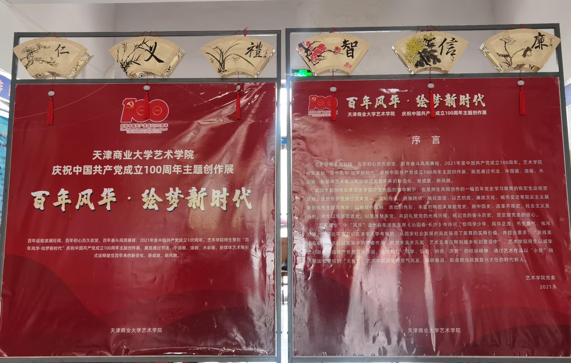 近日,艺术学院“百年风华·绘梦新时代”庆祝中国共产党成立100周年主题创作展在6号教学楼大厅开展,共展出师生艺术作品68件。校领导史习红、卫克武、蒋宗文、吴海东参观展览。