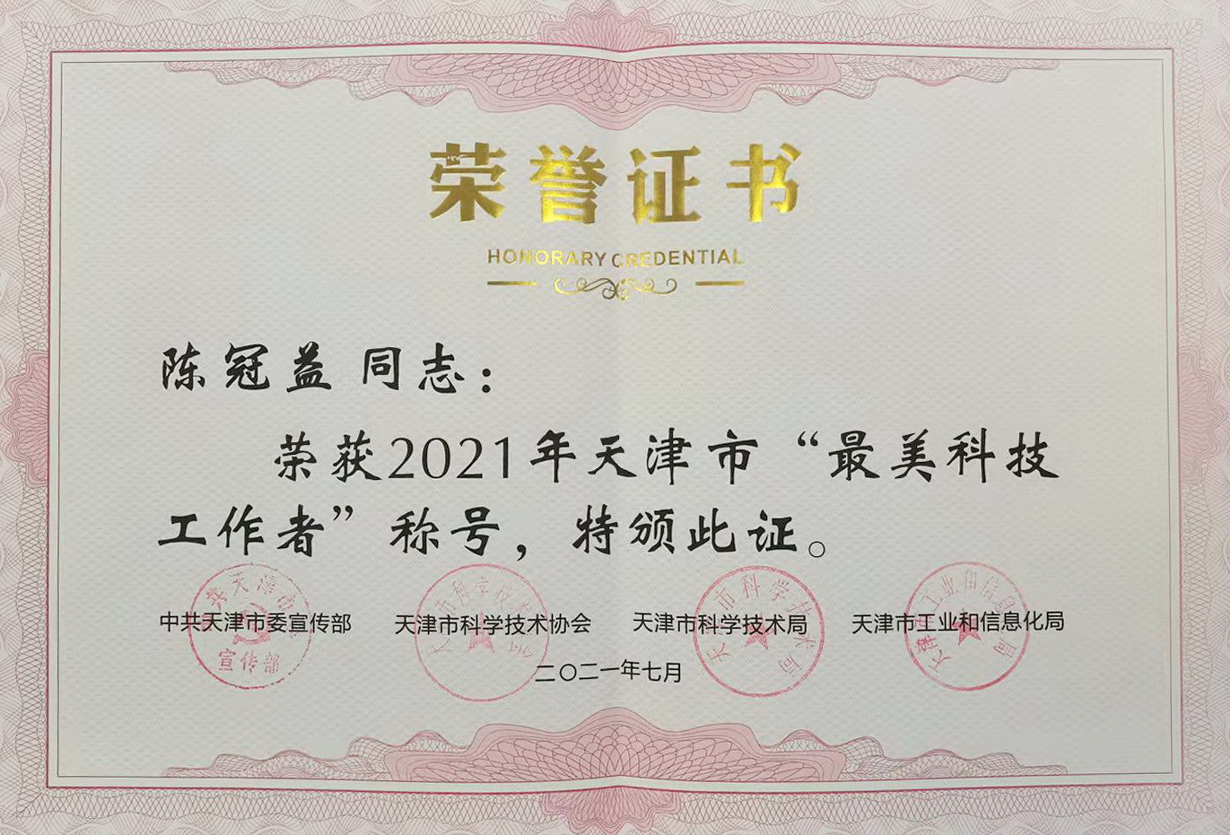 近日,在中共天津市委宣传部、市科协、市科技局和市工信局联合开展的2021年天津市“最美科技工作者”学习宣传活动中,星空副校长陈冠益教授获评“最美科技工作者”荣誉称号,市委常委、市委教育工委书记王庭凯为其颁发荣誉证书。